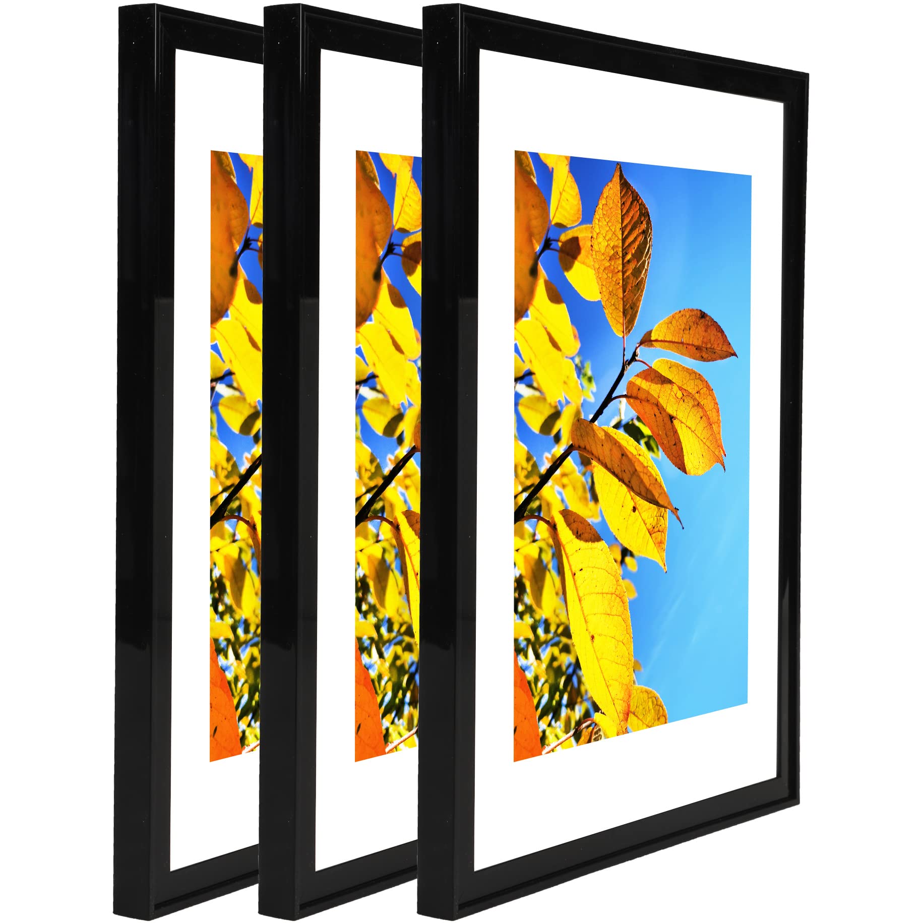 - 8.5x11 picture frames set of 3 black display 6x8 with mat or 8.5x11 Without Mat Picture Frame