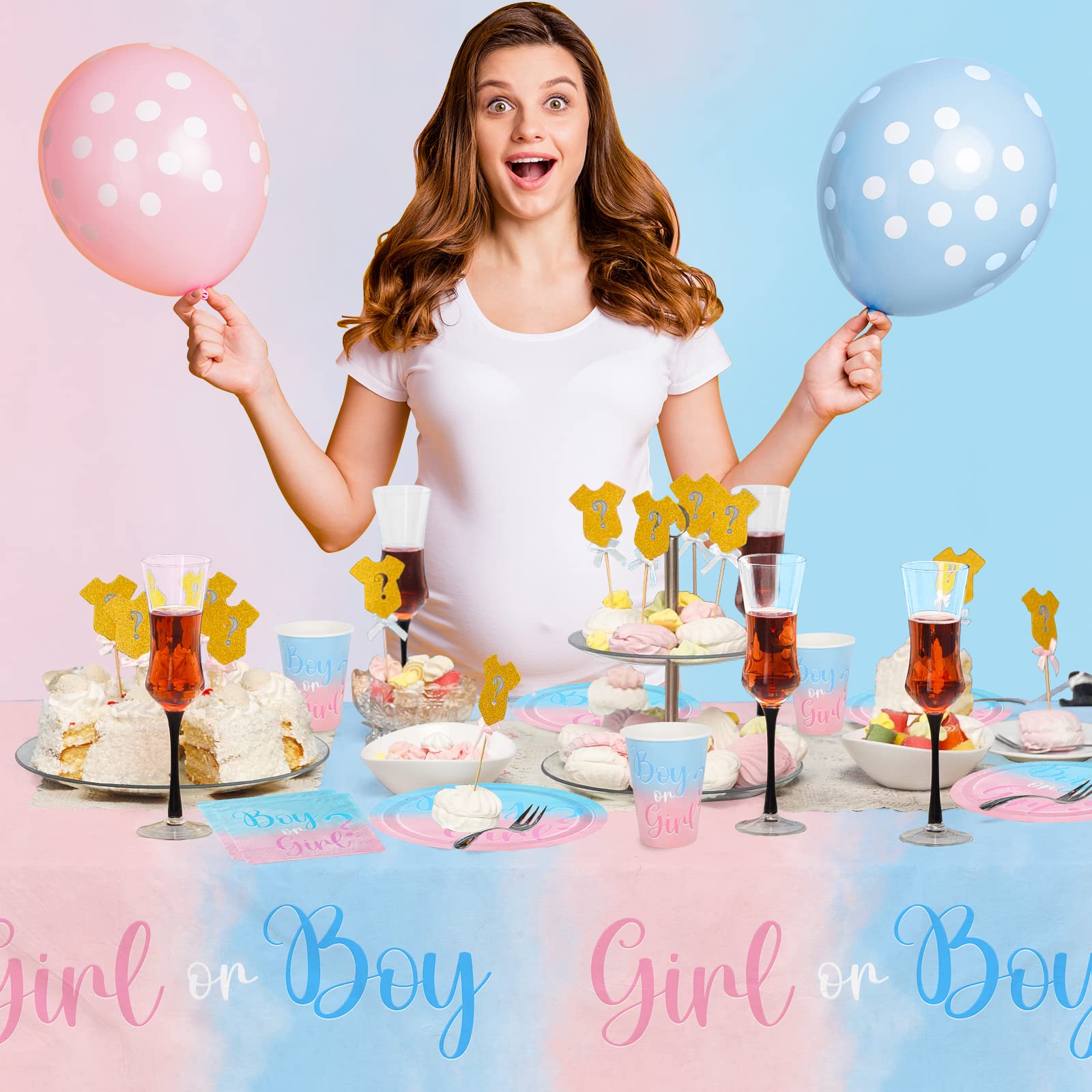 - GENDER REVEAL PACKAGE INCLUDING: 25pcs dinner paper plates (9 inches), 25pcs dessert paper plates (7 inches), 25pcs luncheon napkins, 25pcs paper cups (12 oz) and 1 pc tablecloth (54 x 108 inches).