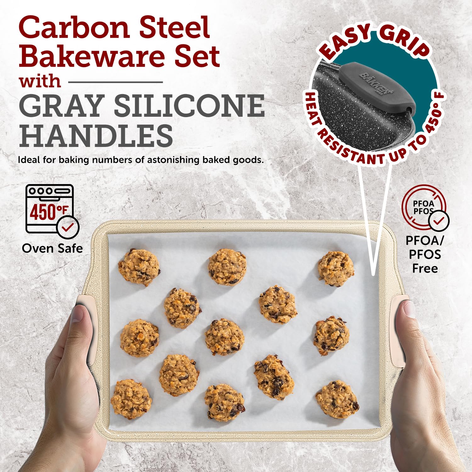 - PREMIUM QUALITY CONSTRUCTION: The BAKKEN Kitchen Oven Baking Pans boast a flexible and nonstick carbon steel design with white silicone handles, ensuring durability and reliability for all your baking needs.