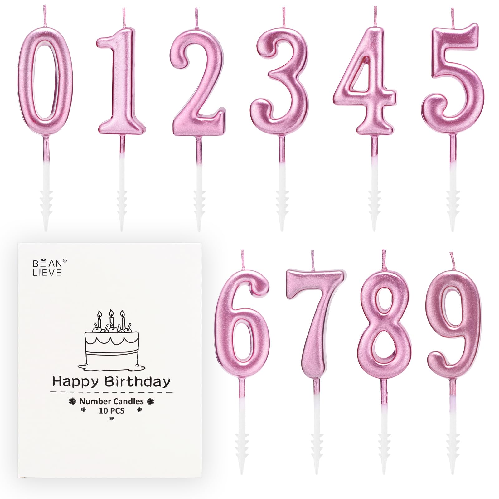 Beanlieve Rose Gold Birthday Candles - Cake Numeral Candles Number 0-9 Glitter Cake Topper Decoration for Birthday,Wedding Anniversary,Party Celebration(10 Pieces)