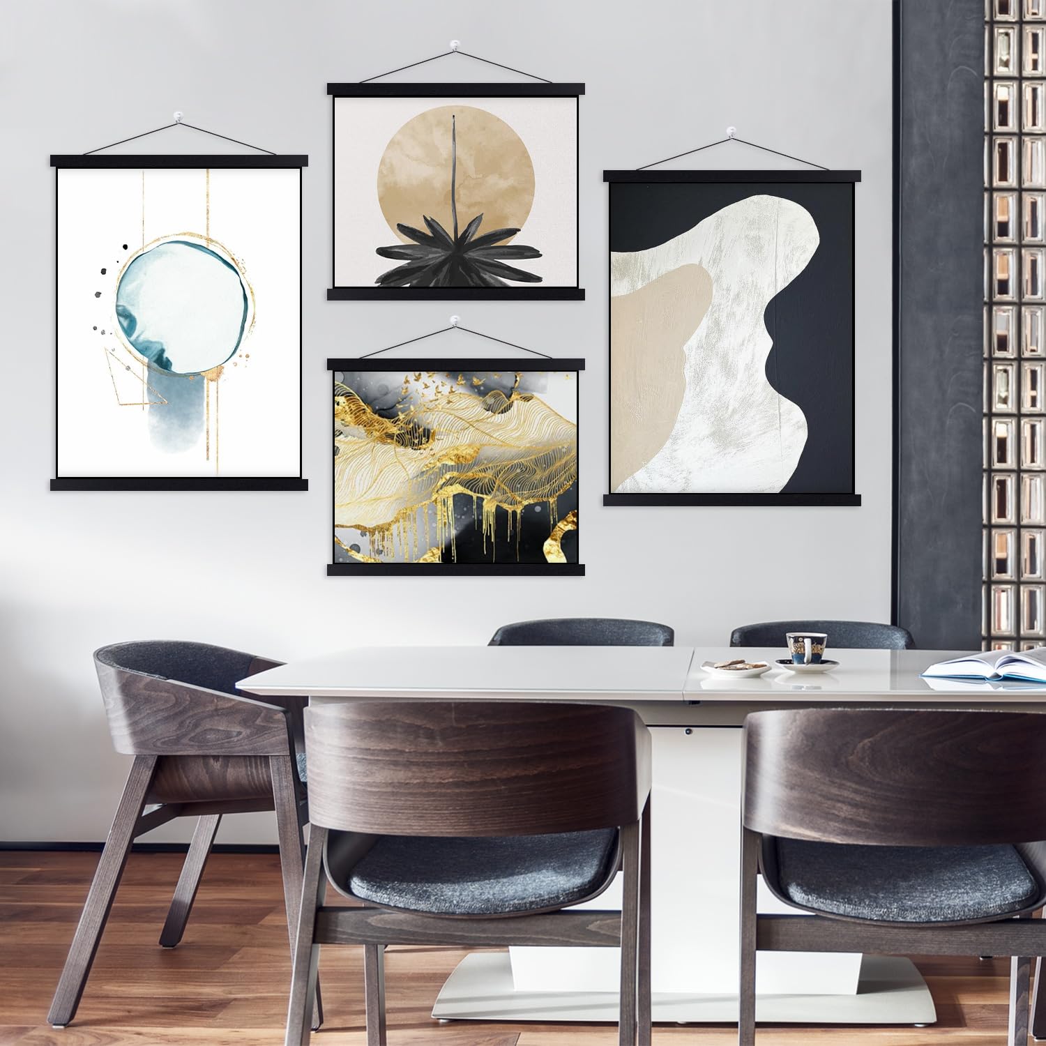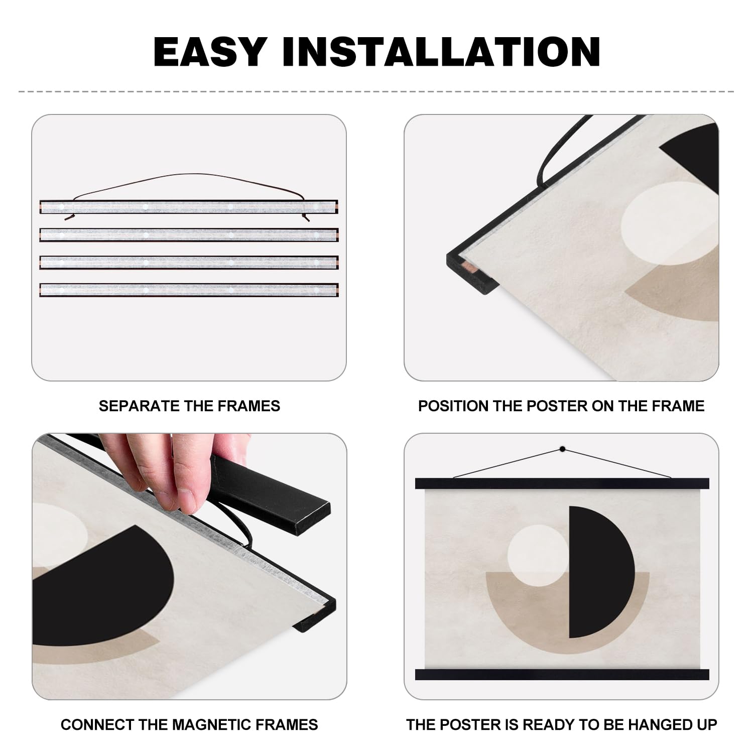 4 Pack 8x10 8x12 8x18 Poster Frame, Magnetic Light Wood Frame Hanger for Photo Picutre Canvas Artwork Art Print Wall Hanging (4 Packs, 8", Black)