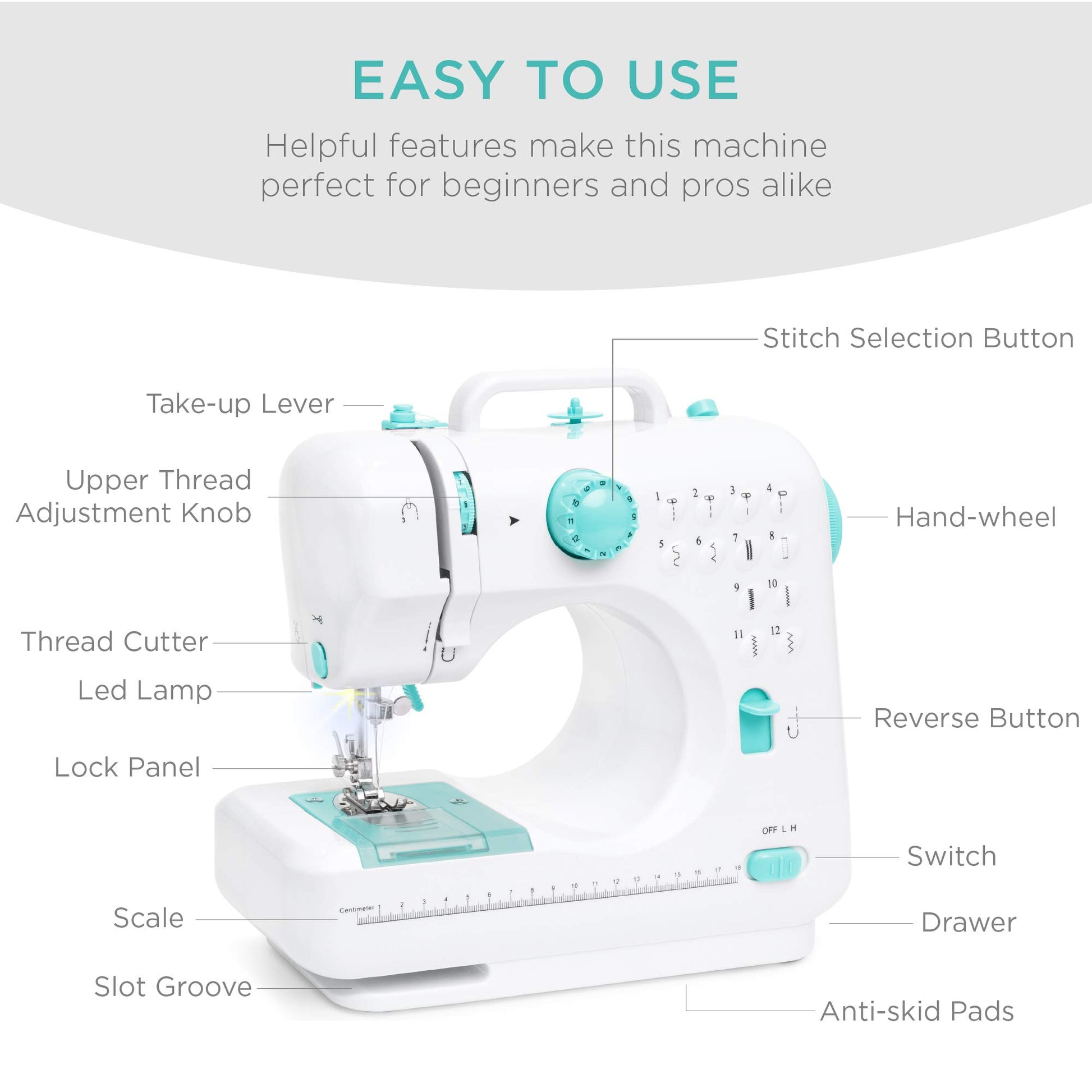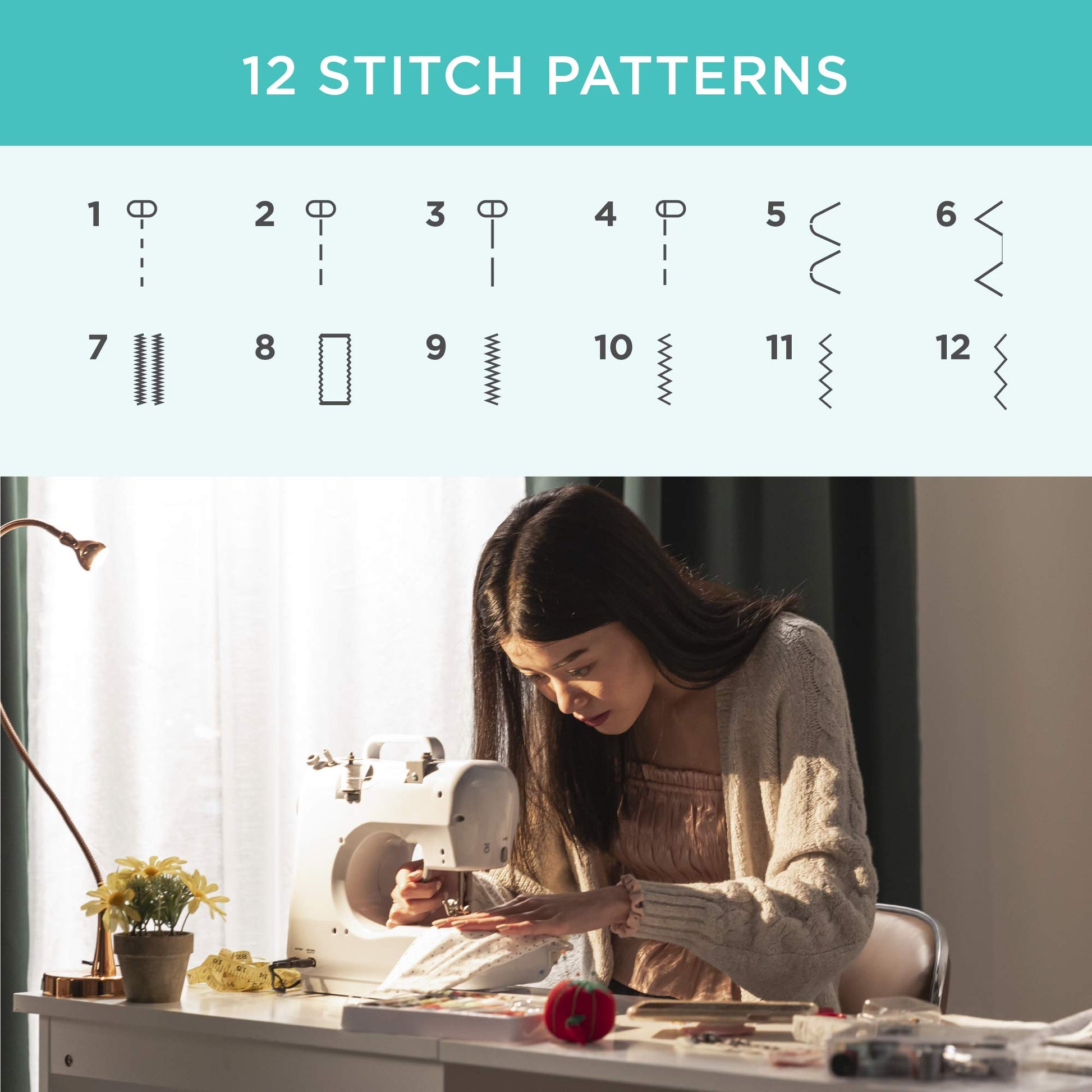 - 12 PRESETS: Preset stitch patterns simplify the learning curve for beginners, allowing them to complete more complex projects with ease