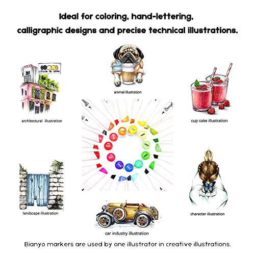 - Vibrant Colors & 1 Colorless Blender 2 Black - Bianyo art marker's colors are both vibrant and vivid. 72 primary colors meet the needs of any professional artist and are recognized for their excellent coverage, blending ability, and diversity of colors which dry instantly, leaving a smooth brilliant, smudge-free, and durable work. Bianyo art marker set includes 1 colorless blender, 1 black, and 1 super black color.