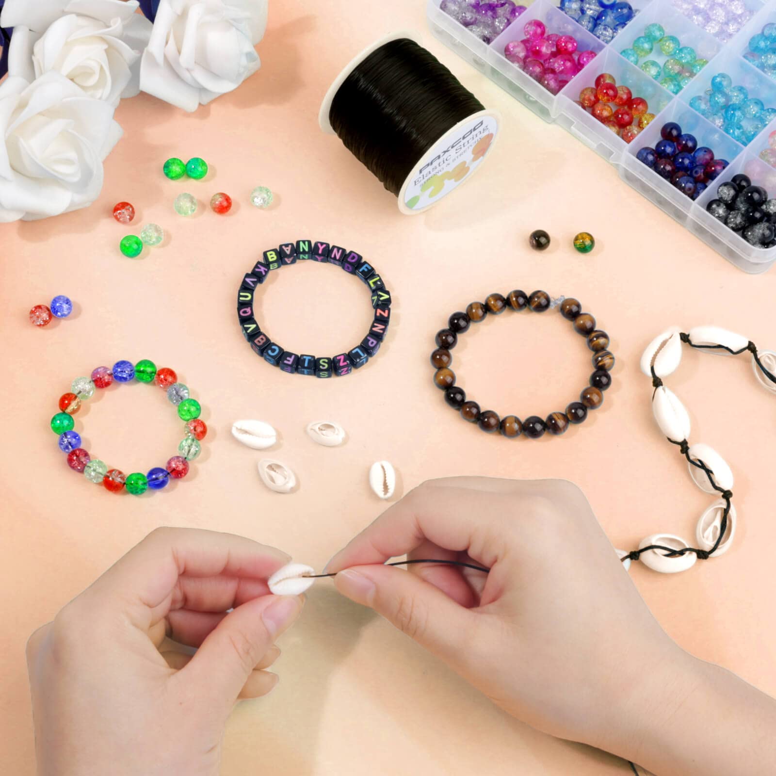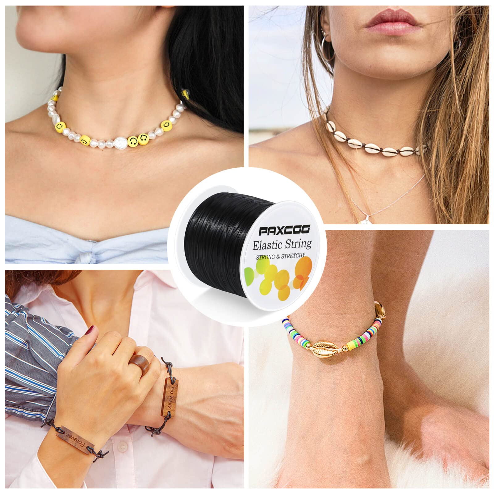 - BLACK BRACELET STRING: Paxcoo stretch bead cord comes with a roll of 109 yards of black bead bracelet cord, ideal for bracelet making, jewelry making, beading, necklace making and other art craft projects