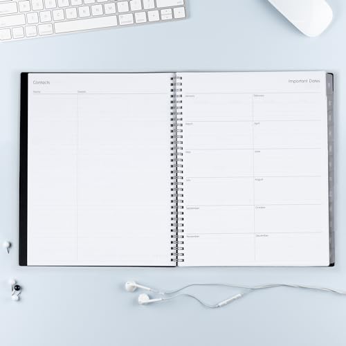 - Details: Plan your year in style with the minimalistic design and classic colors of the 2024 calendar year Enterprise collection. This stylish weekly and monthly planner will keep you organized everywhere you go. Simple page designs add a touch of sophistication and offer plenty of room for all of your important information. Designed with practicality and ease of use in mind, this professional agenda's monthly calendar tabs allow for easy access to each month’s plans while weekly views offer ample writing space for detailing each day. High quality white paper provides clean writing space for jotting down your appointments, to-dos and reminders. Use this dated planner to keep track of your appointments, and to write down notes and ideas in one place. Durable coated tabbed dividers are long lasting and make accessing information a breeze. Premium quality covers and twin-wire binding provide reliable durability for daily use. Stay on track throughout the year with this 8.5 x 11 planner dated January 2024 - December 2024. Mix and match with other Enterprise Collection planning products from Blue Sky to organize your daily life.