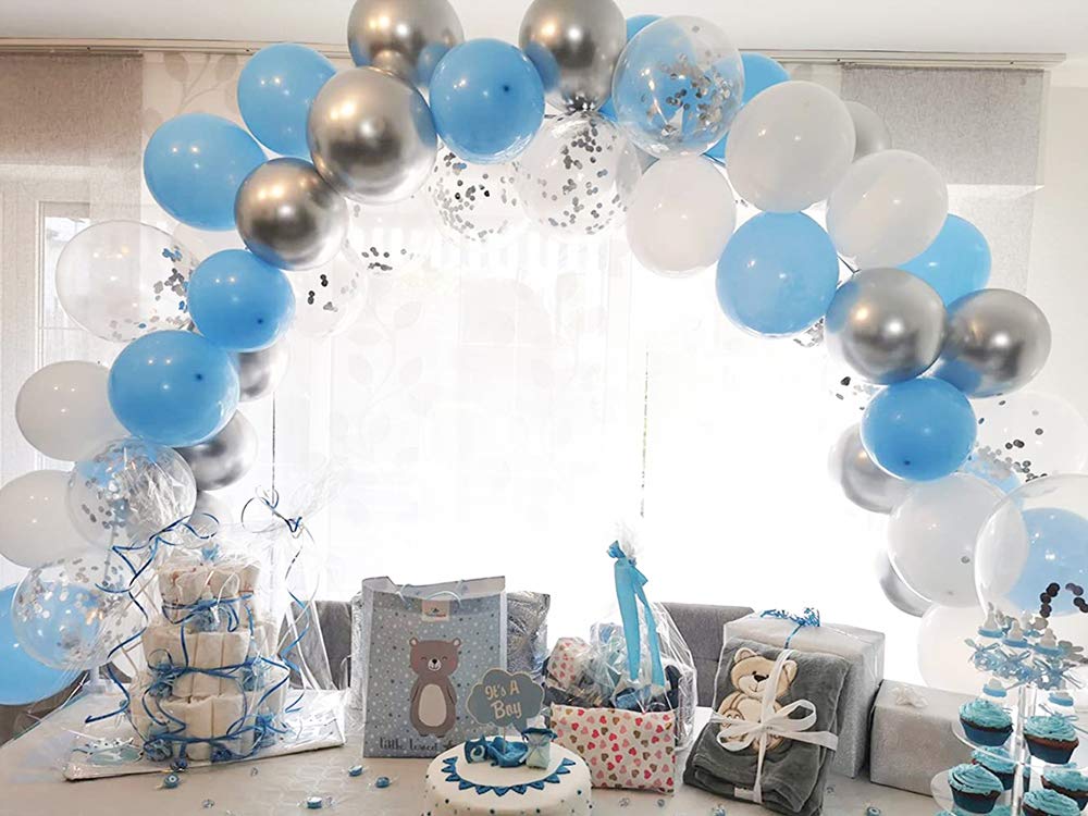 - Assorted Colors: Set of 50 balloons in blue, white, silver, and confetti colors to match any party theme.