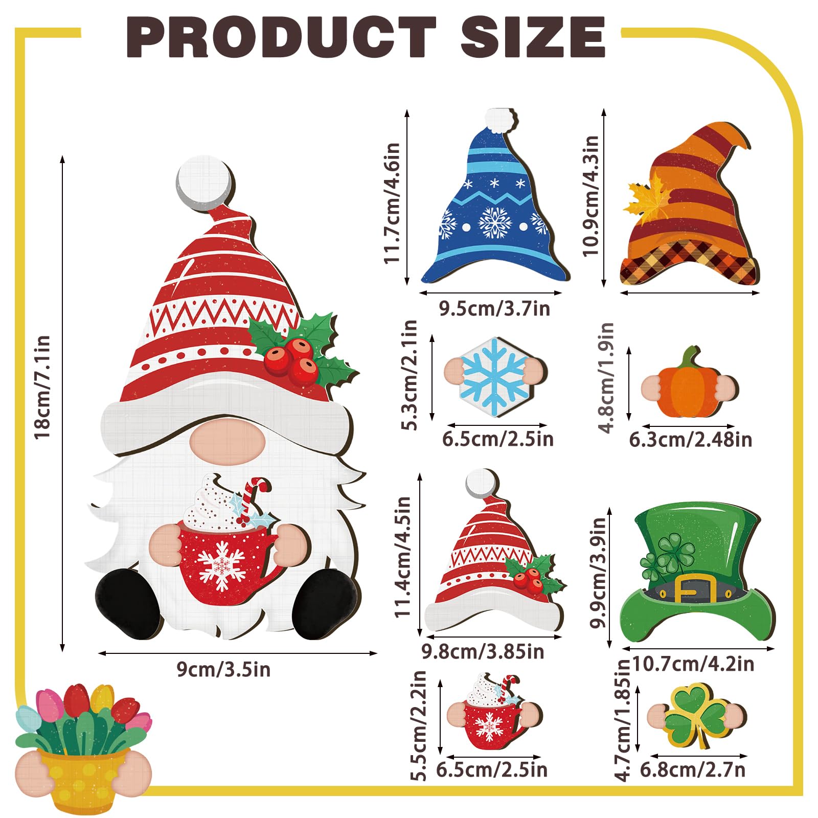 - Delicate Appearance: our DIY Christmas wooden interchangeable gnome sign is designed in a delicate appearance, and the changeable wood patterns feature pumpkins, snowflake, turkey, and so on, which can well satisfy your different decorative demands