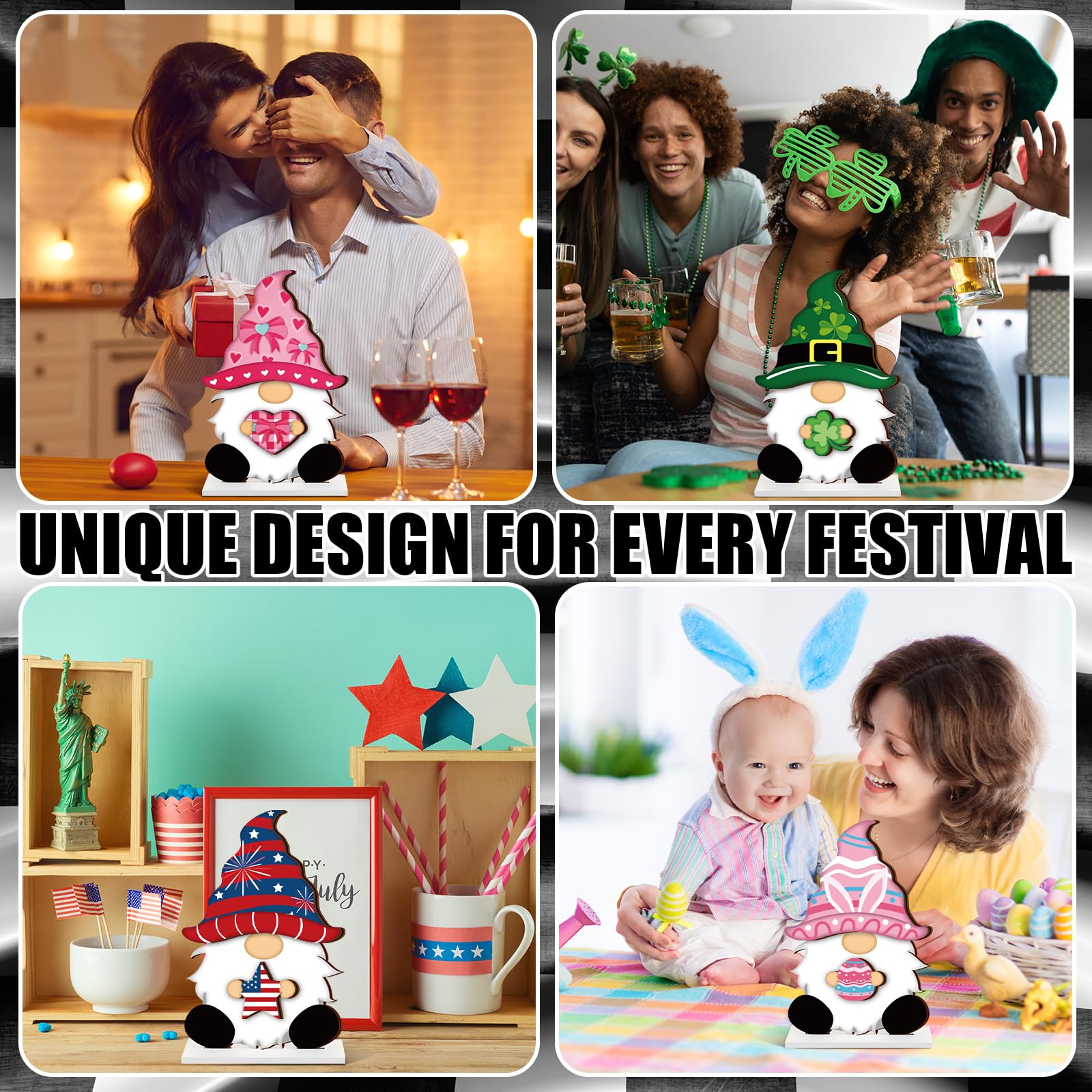 - What You Will Get: you will receive a package coming with 1 piece of freestanding wooden gnome decor along with 32 pieces of interchangeable themed magnet pieces, a total of 16 groups; Each piece measures approximately 18 x 12 cm/ 7.09 x 4.72 inches for your use
