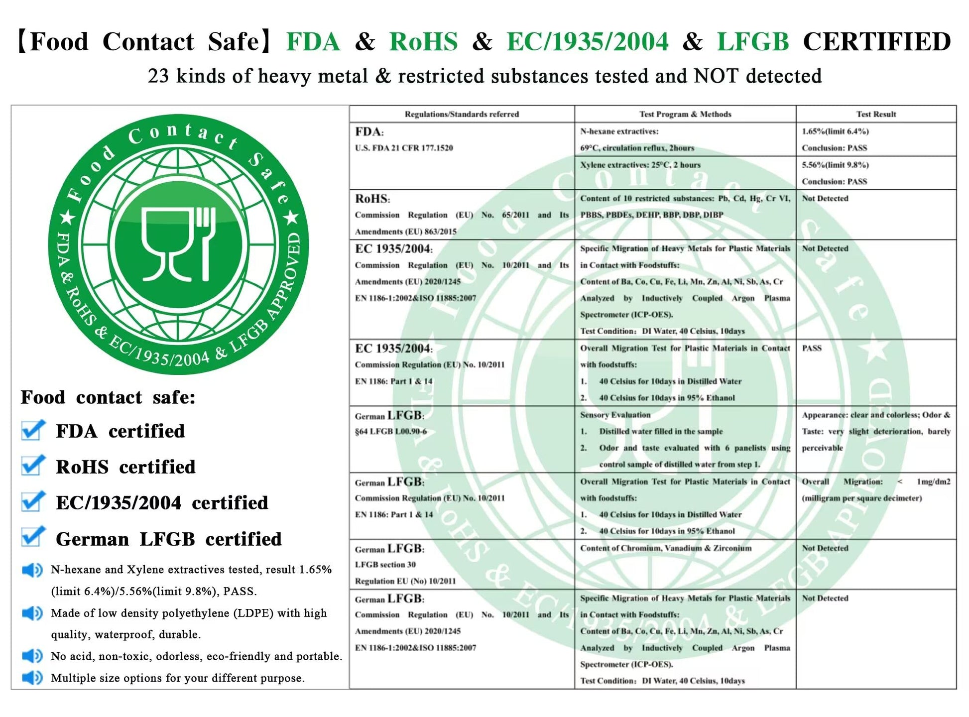 - No vent hole, strong sealing, water resistant, odor-free and reusable.
