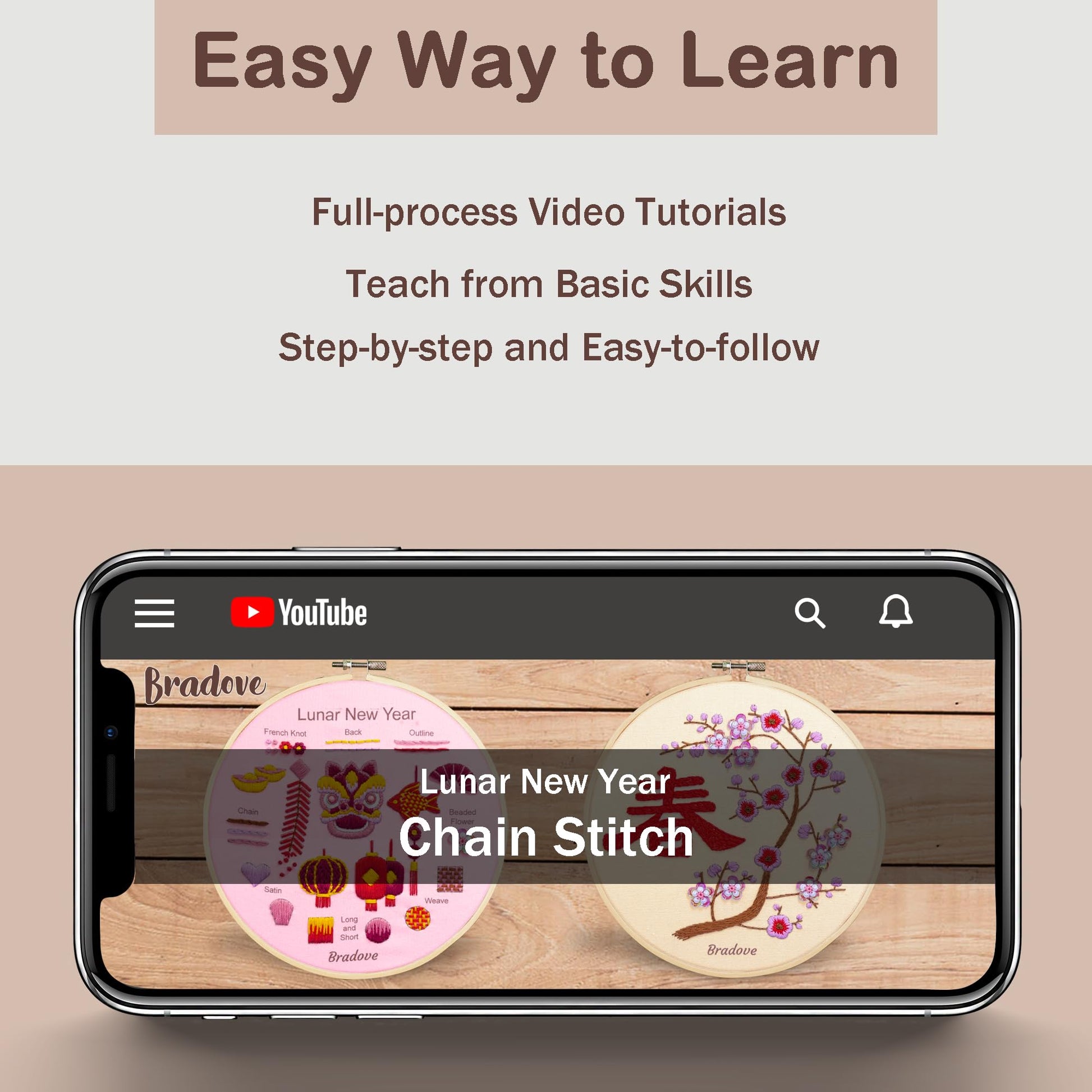 Bradove Lunar New Year Beginners Embroidery Kit for Adults Kids, Learn to Embroider Oriental Patterns, Stitches Kit, Bead Embroidery Kit, Beginner Embroidery Practice