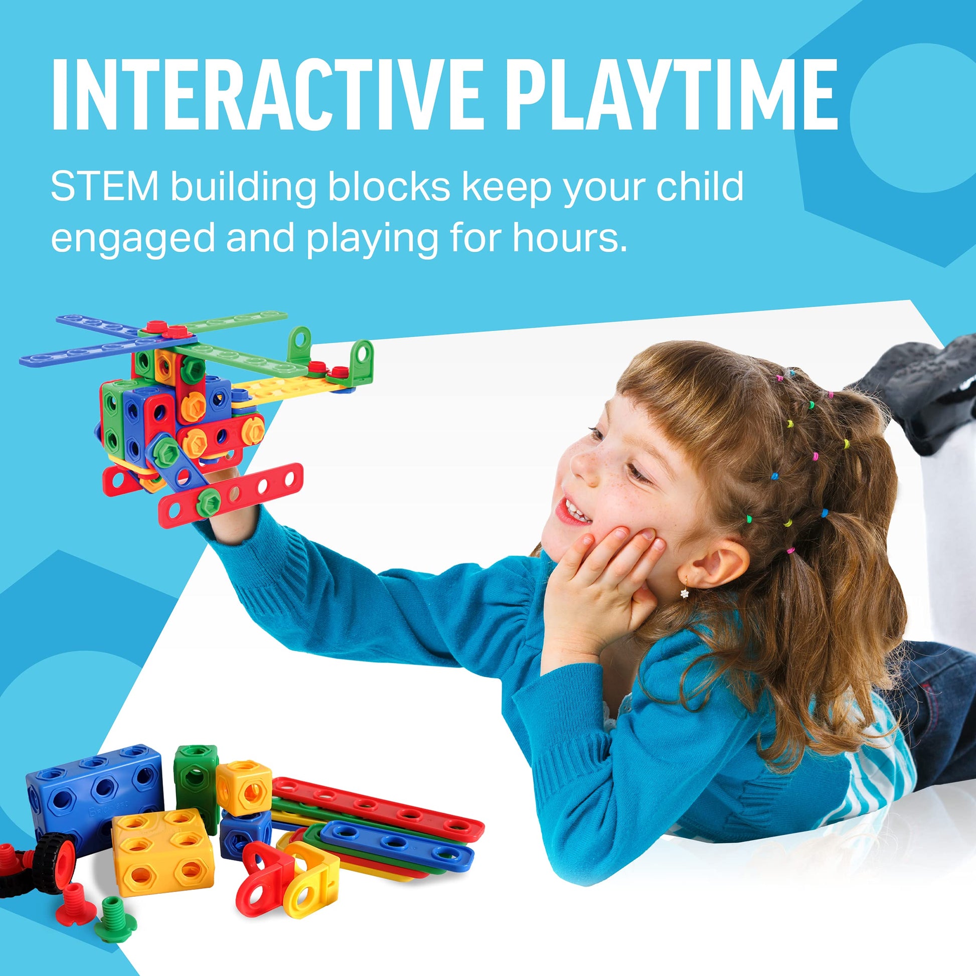 - 163 PIECES - The more the merrier! Our STEM building educational toy set has enough blocks, wrenches, moveable wheels, nuts, and bolts for up to 4 / 6 kids at one time.