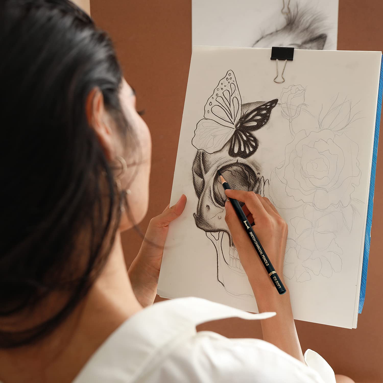 - Perfect Charcoal Pencils set - Charcoal Drawing Kit including 6 pcs charcoal pencils, available in four different grades (2 pcs Ex-Soft, 2 pcs Soft, 1 pcs Medium, 1 pcs Hard). Great for detailing, sketching, drawing, shading and blending.