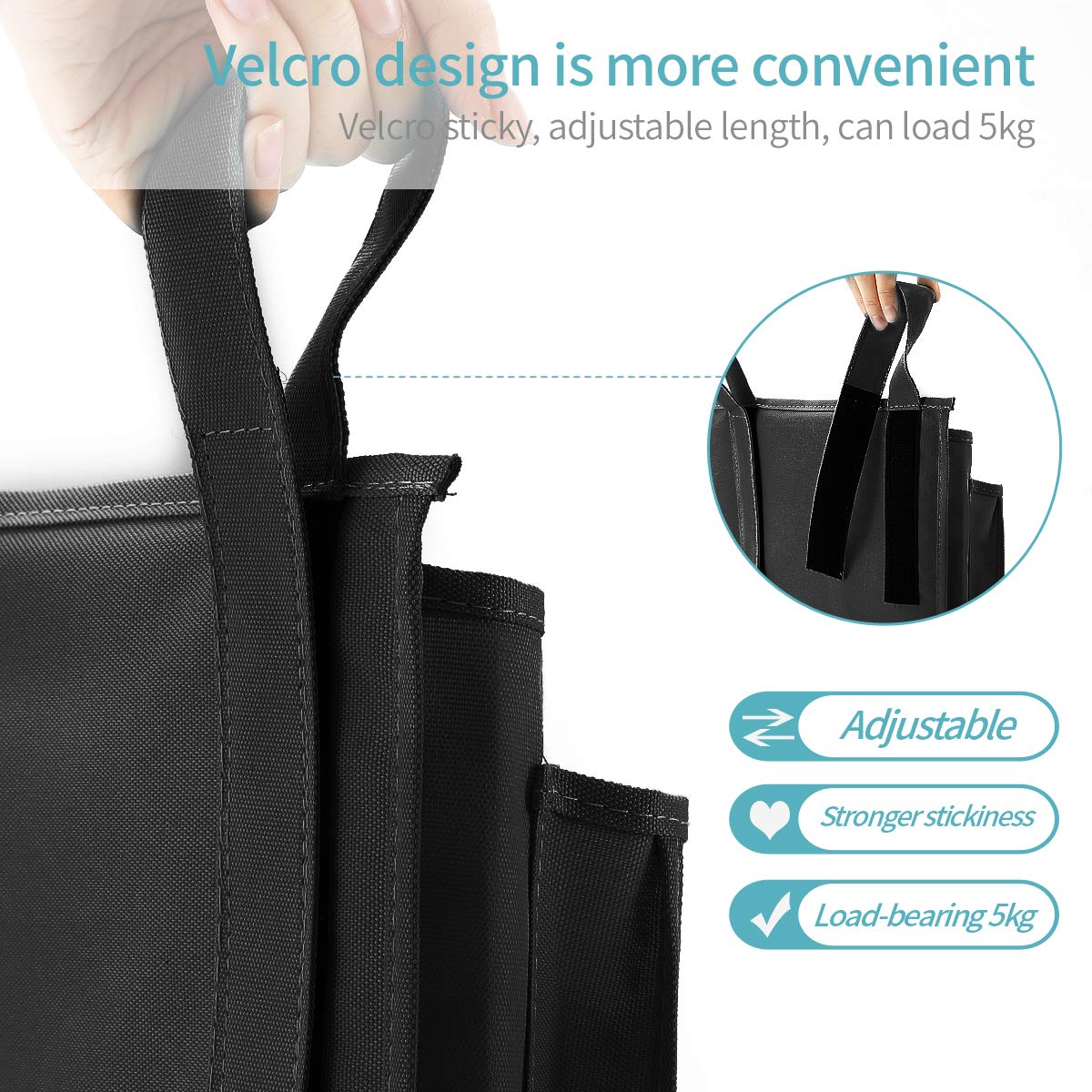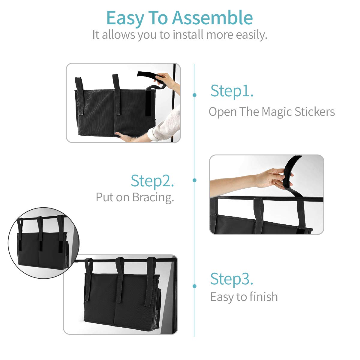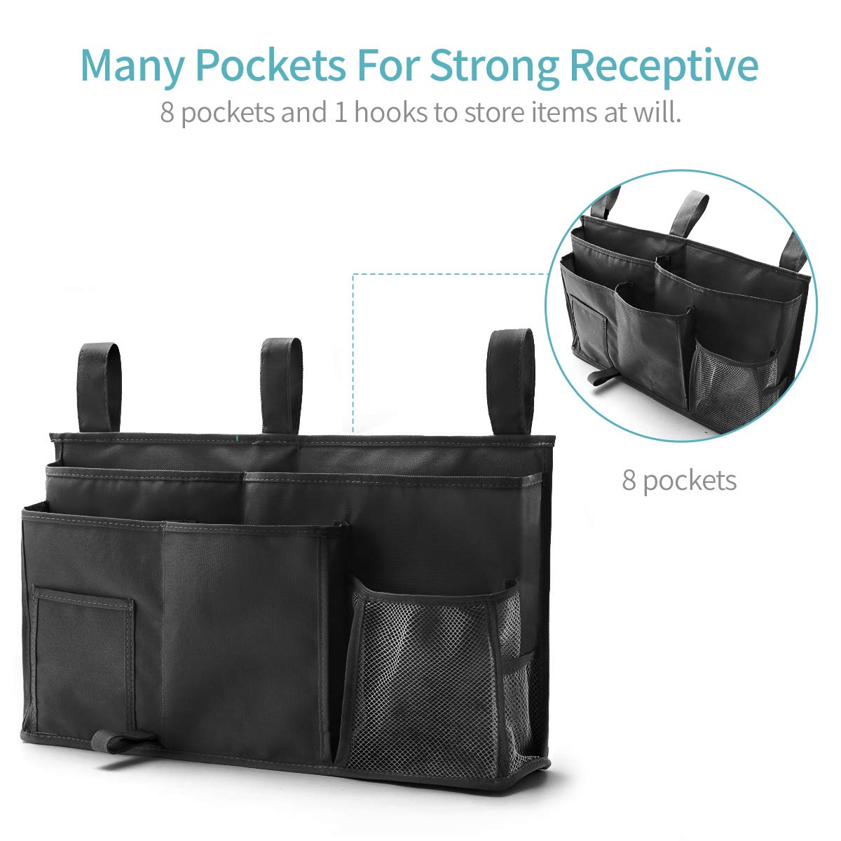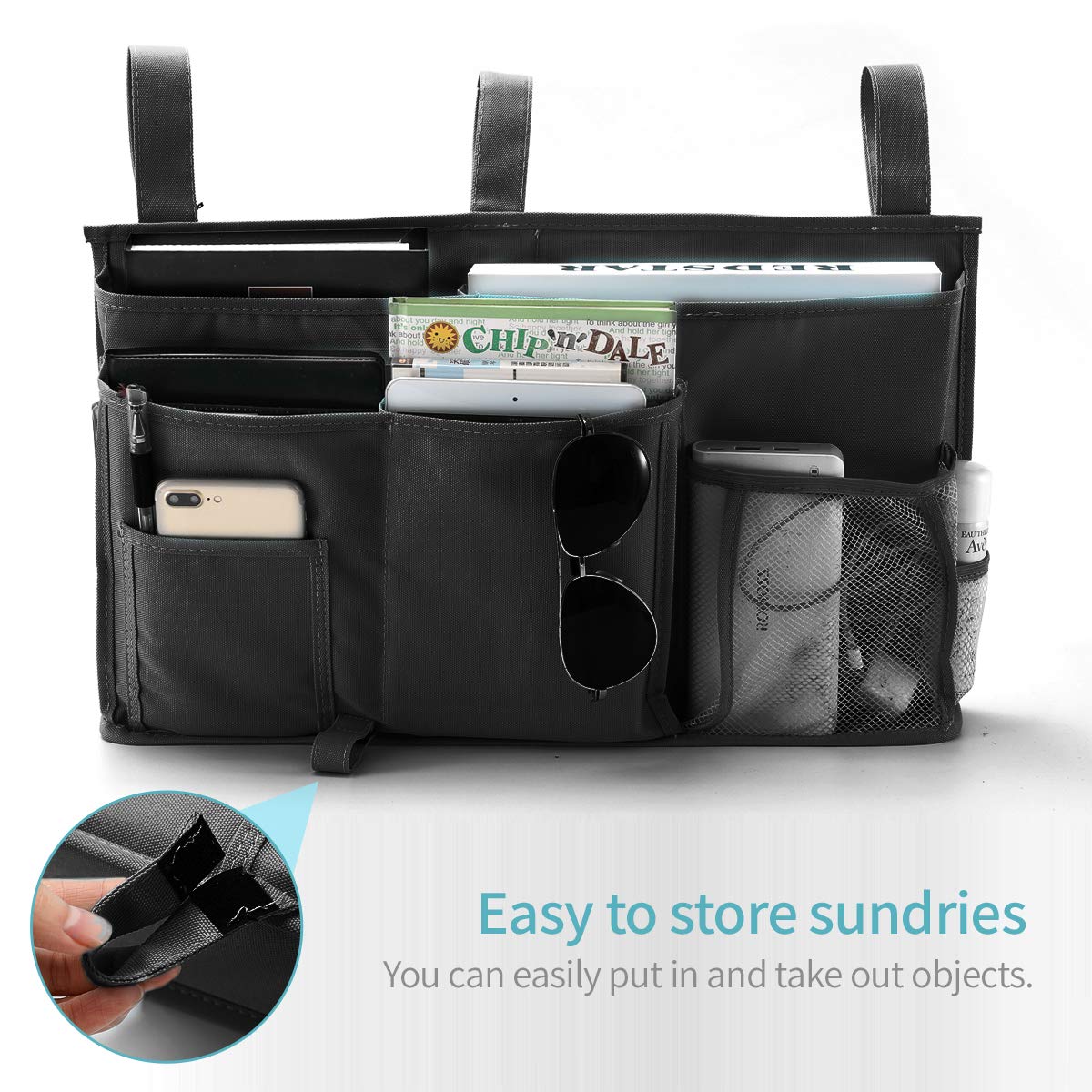 - GOOD QUALITY – Made of 600D Waterproof Oxford Fabric with reinforced stitching, easily attaches to bed rail using three adjustable heavy duty velcro straps, keep the bedside caddy securely in place, durable enough to withstand heavy weight. Easy to use, no assembly required.