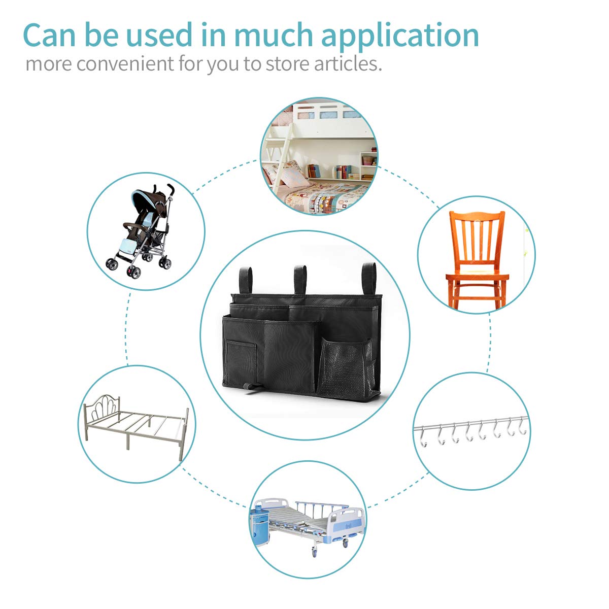 - BEDSIDE ORGANIZER HAVE MULTI PURPOSE: Perfect for students hang on the bedside to storage books,magazines,notebooks,pens,celphone and some snacks and drinks,also great for hang on the baby stroller or child bed to organizer the items that baby need
