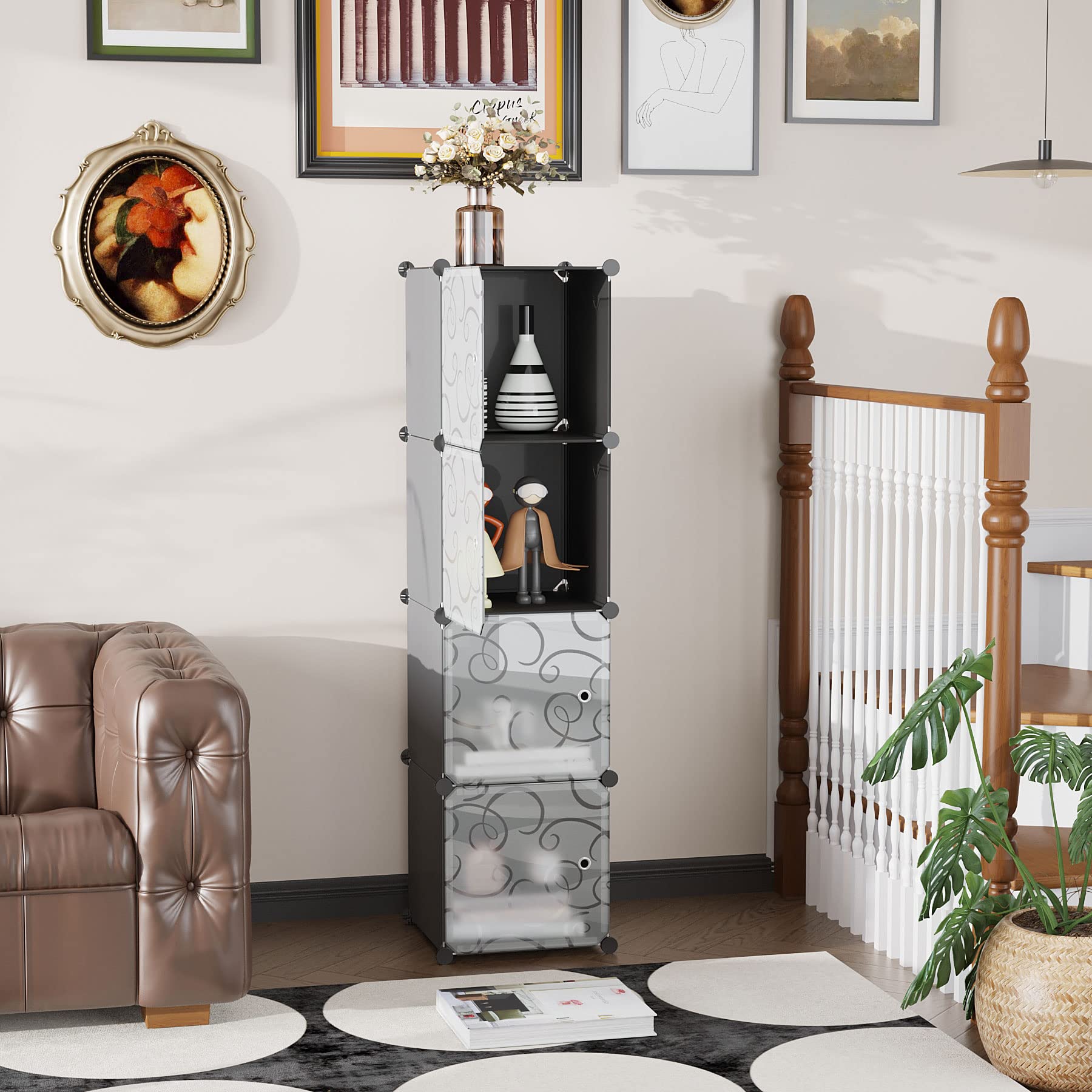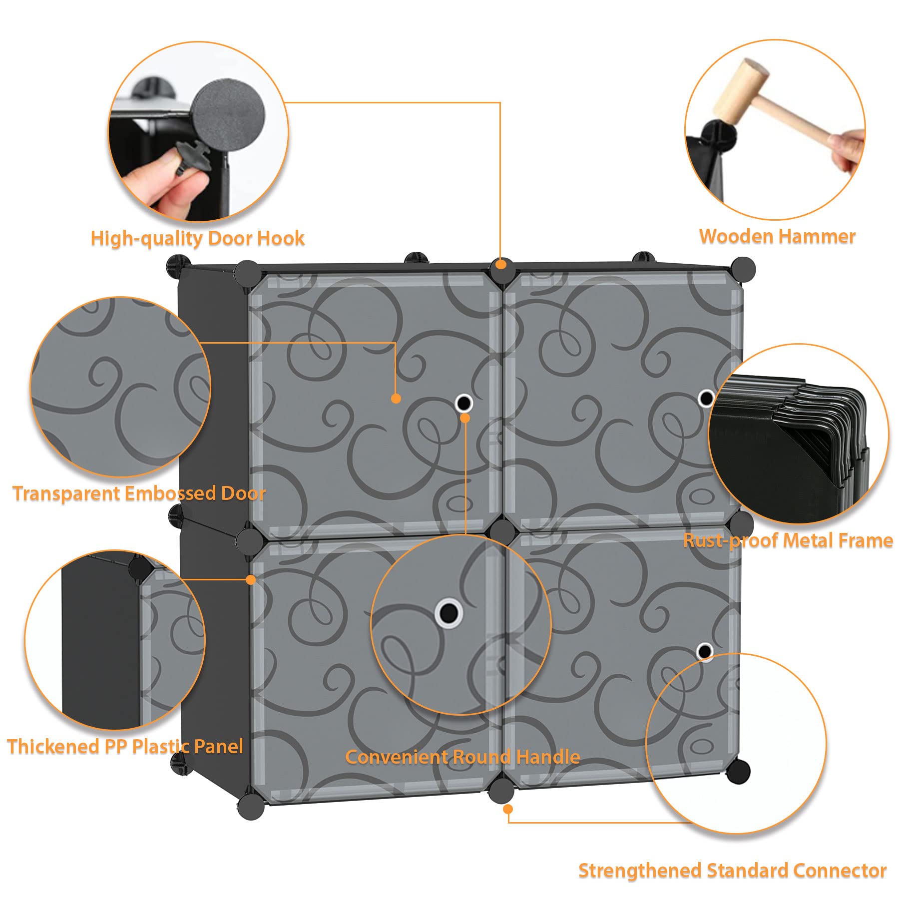C&AHOME Cube Storage Organizer with Doors, 4-Cube Shelves, Closet Cabinet, DIY Plastic Modular Bookshelf Ideal for Bedroom, Living Room, 24.8" L x 12.4" W x 24.8" H Black SHS04B-DOOR