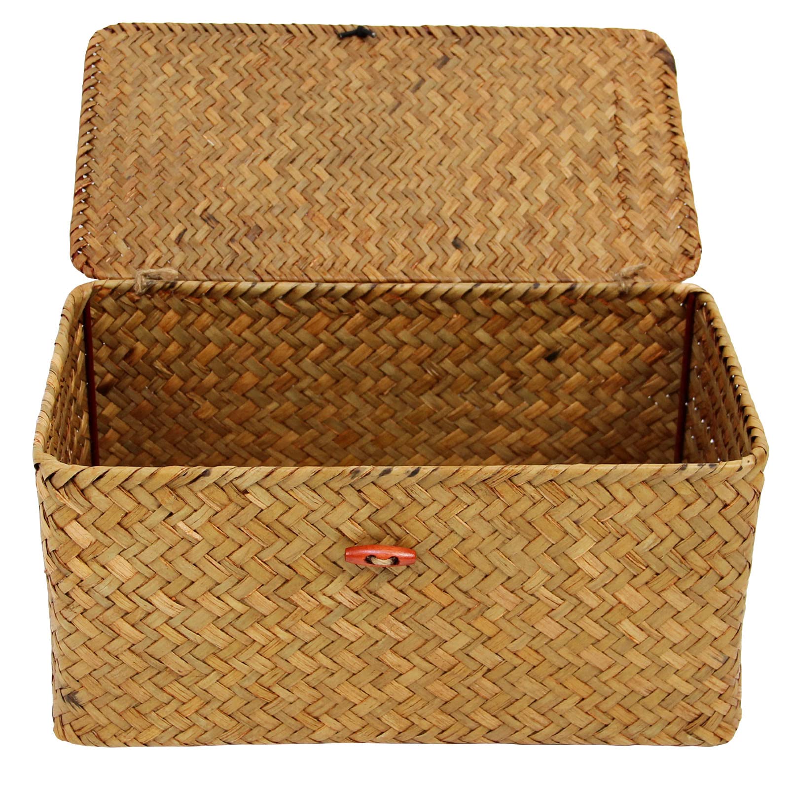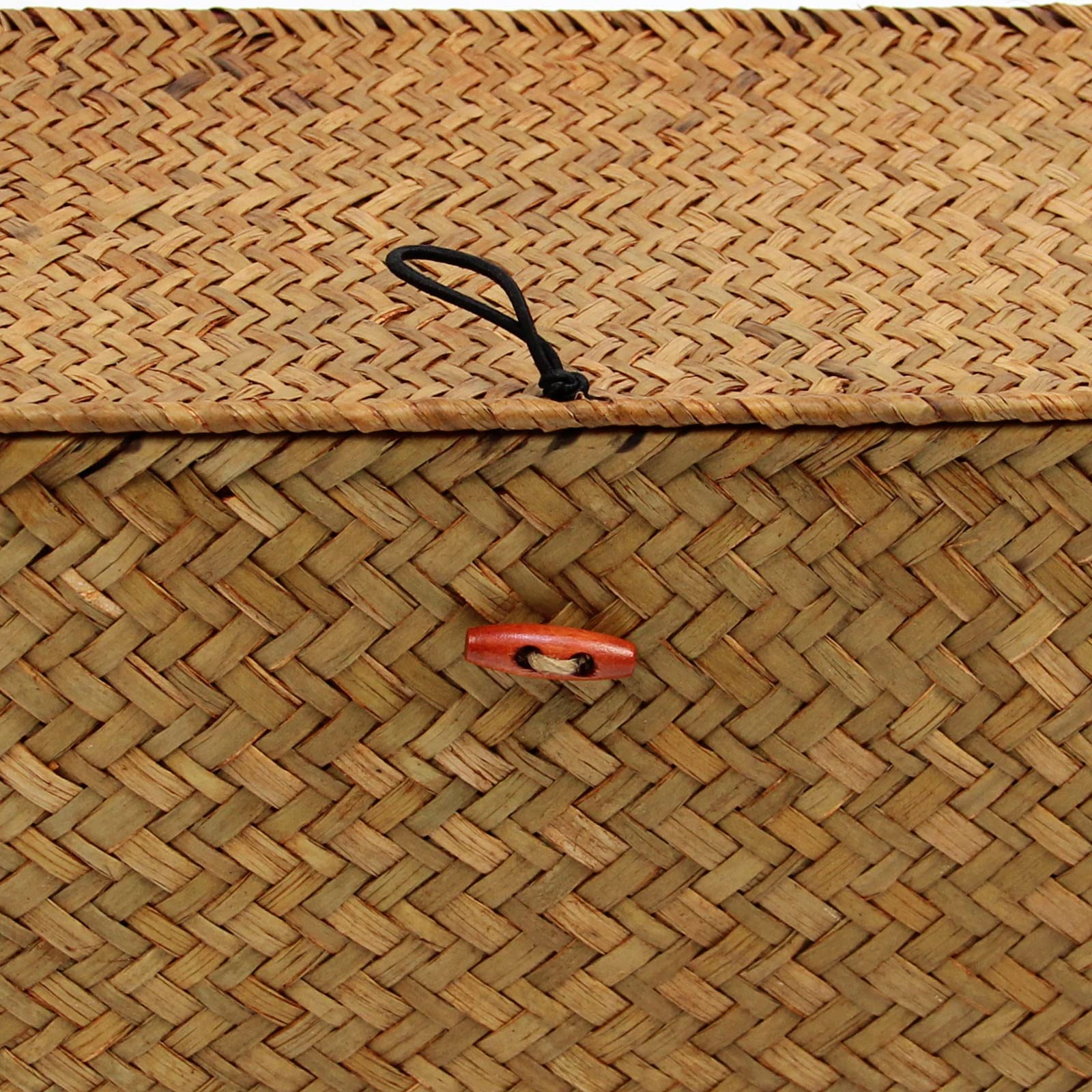Casaphoria Large Square Sea Grass Baskets for Storage Seaweed Woven Sundries Baskets Sturdy and Durable Natural Material for Make-up with Lid Big Rectangular Seagrass Towel Baskets for Organizing