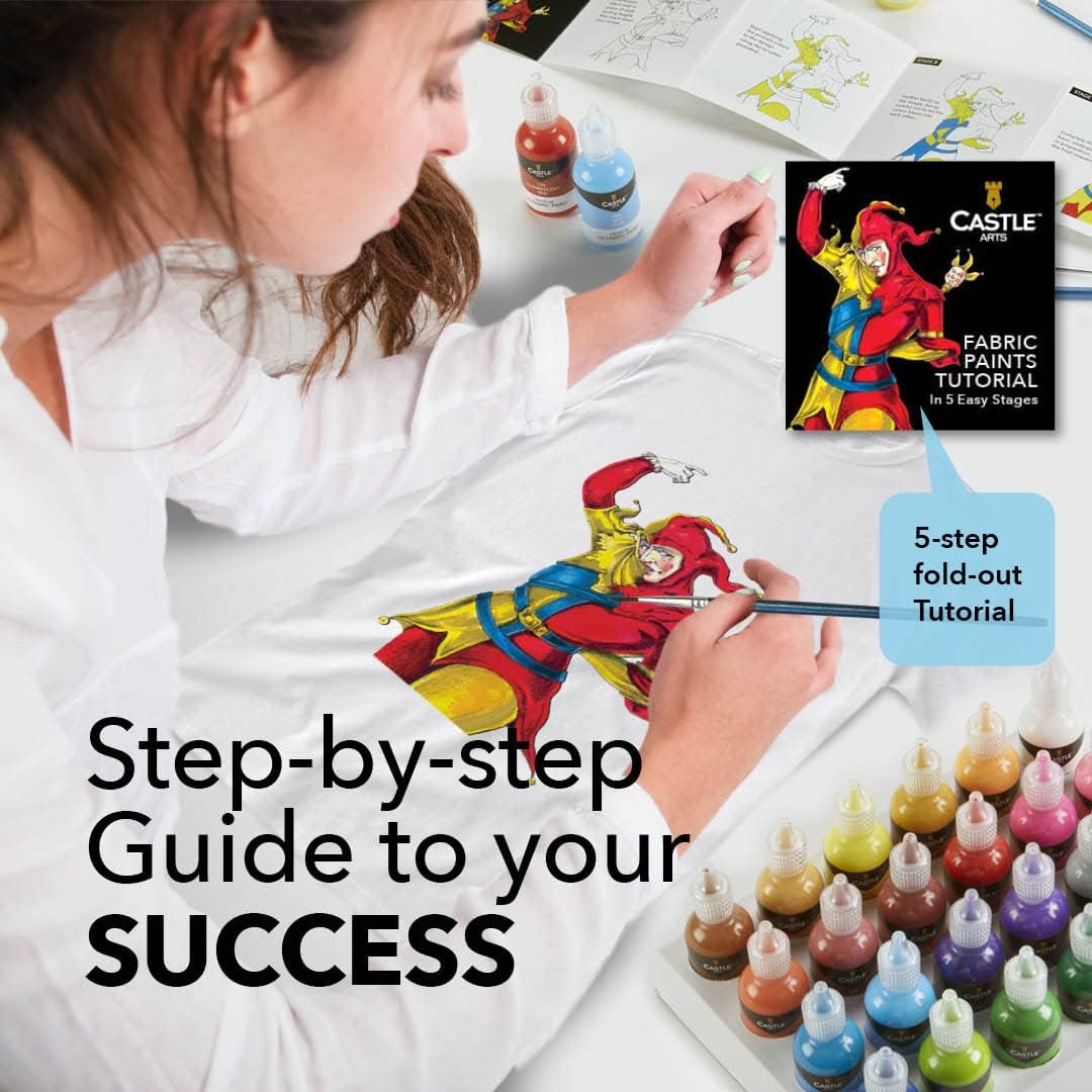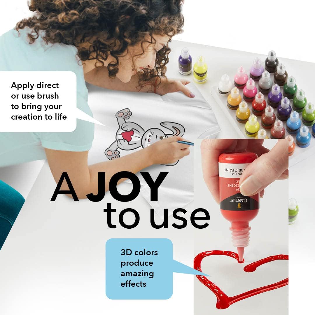Castle Art Supplies 3D Fabric Paint Set | 24 Quality Vibrant Colors in 29ml Bottles | For Artists; For Crafters; For Fun | Clothing, Textile, Canvas, Glass, Wood, Shoes | In Strong Selection Box