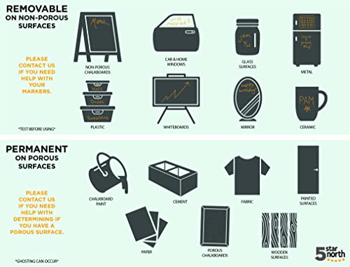 - IMPORTANT! NEVER use any chalk markers on chalkboard paint or low-quality porous chalkboards. Test in a corner first. WRITE ON ANY PRIMED CHALKBOARD, GLASS OR OTHER NON POROUS SURFACE. These chalkboard markers also make great window markers and dry erase markers! Use these chalk markers for glass, tile, contact paper, stickers, whiteboards, plastic, and metal with ease. The bright liquid chalk is sure to please.