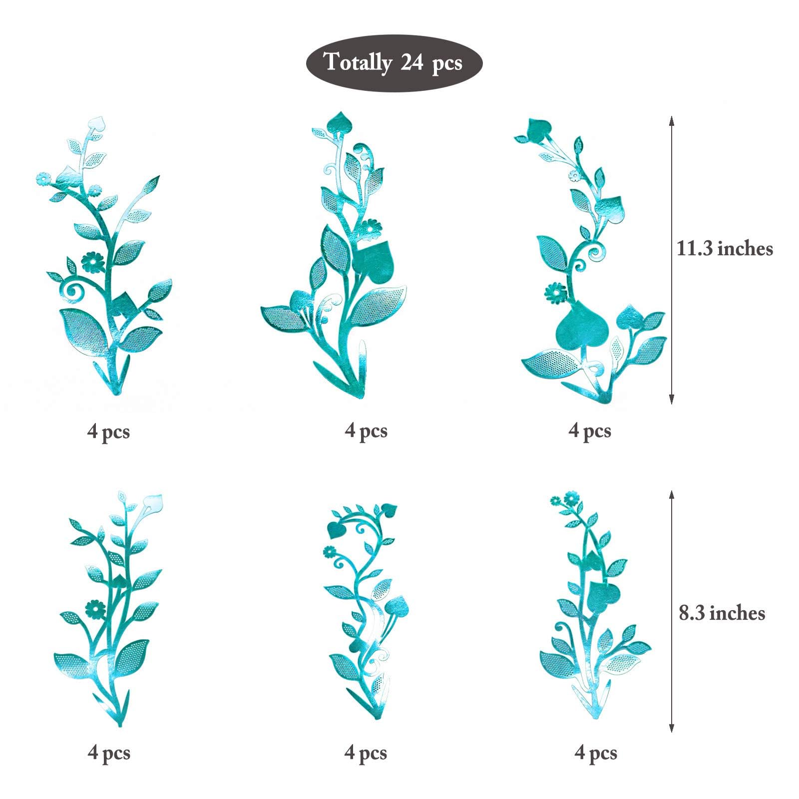 Cheerland Leaf Vine Garlands Teal Blue Hanging Leaves Banner Backdrop Wall Stickers Decorations for Birthday Anniversary Wedding Tea Party Supplies - Pack of 24