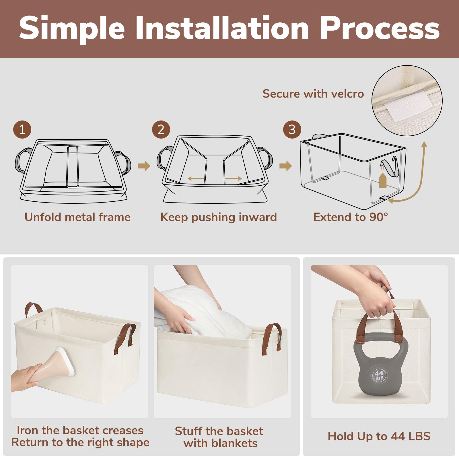 - Premium Quality: Our storage bins boast a waterproof interior coating and are made with top-quality materials. The addition of base plates and metal frames provide superior load-bearing and upright stability for maintaining form and structure even when empty or stored