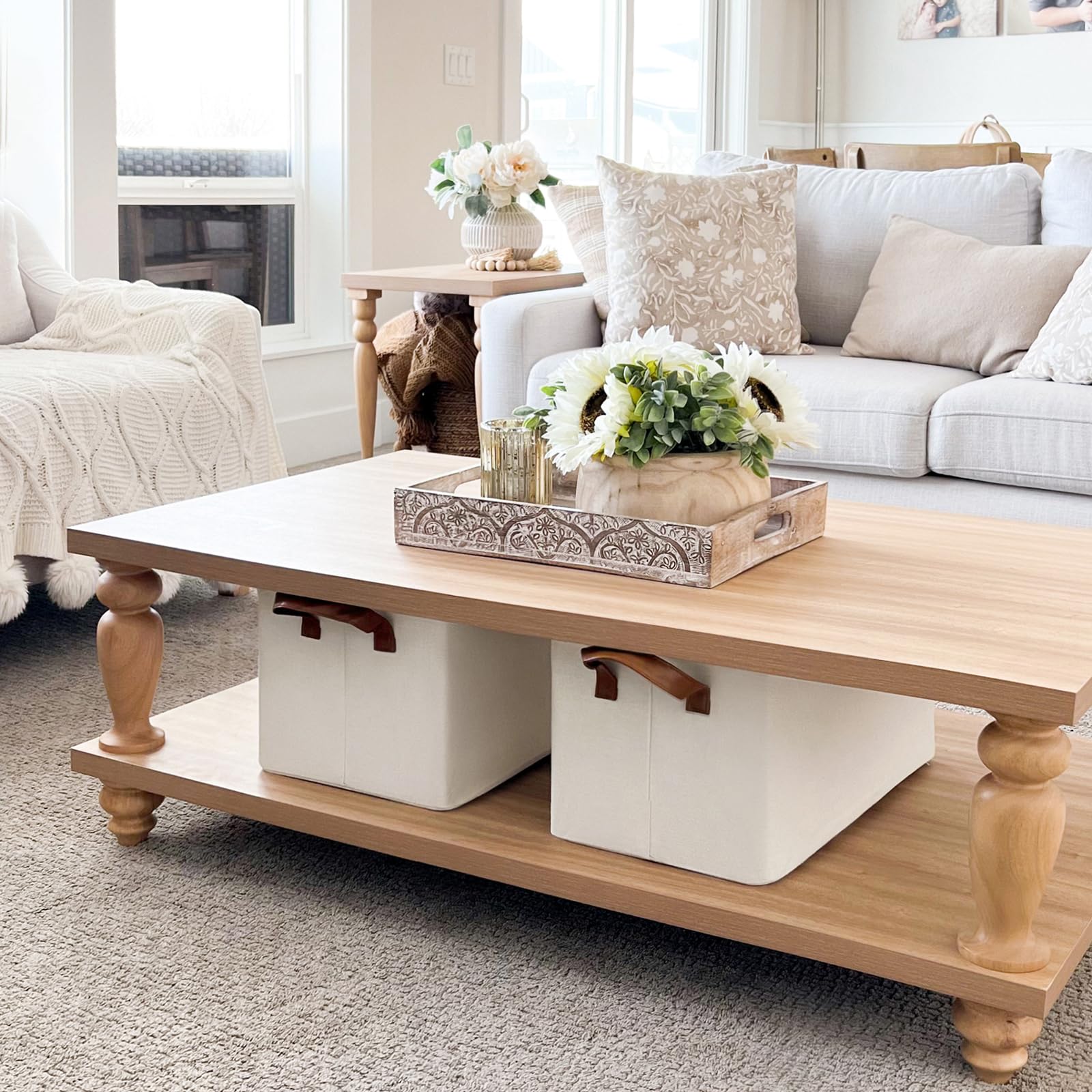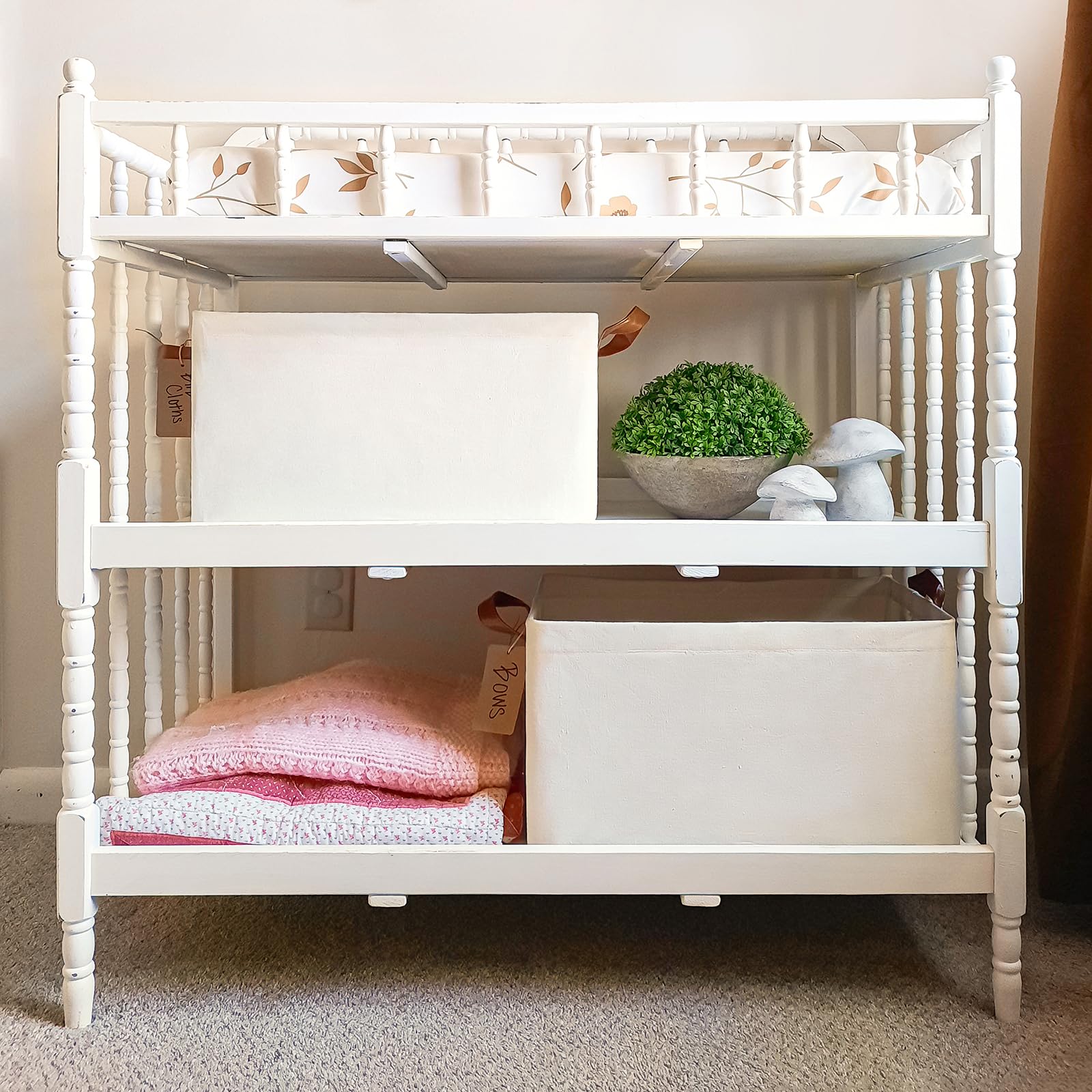 - Stylish and Decorative: With leather handles and a neutral color, these large storage bins add a touch of elegance while serving as functional storage solutions. They're an ideal choice for a nursery's shelves or under the crib for storing baby essentials and clothing