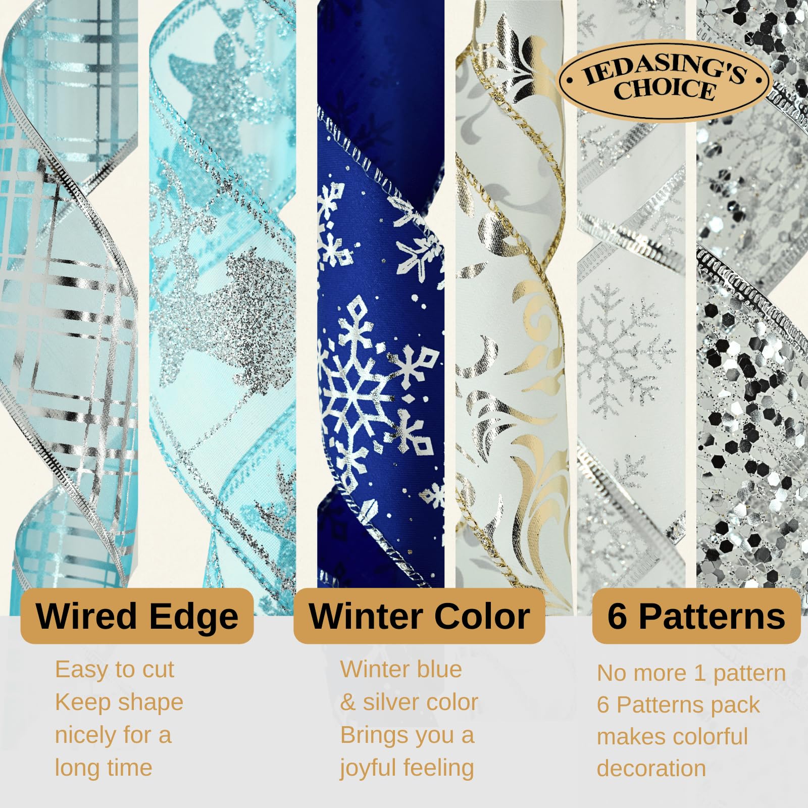 - Blue&Silver Combination: Contains wired organza ribbon, mesh ribbon, and snowflake-patterned ribbon, perfect for a winter wonderland theme with cool, elegant tones