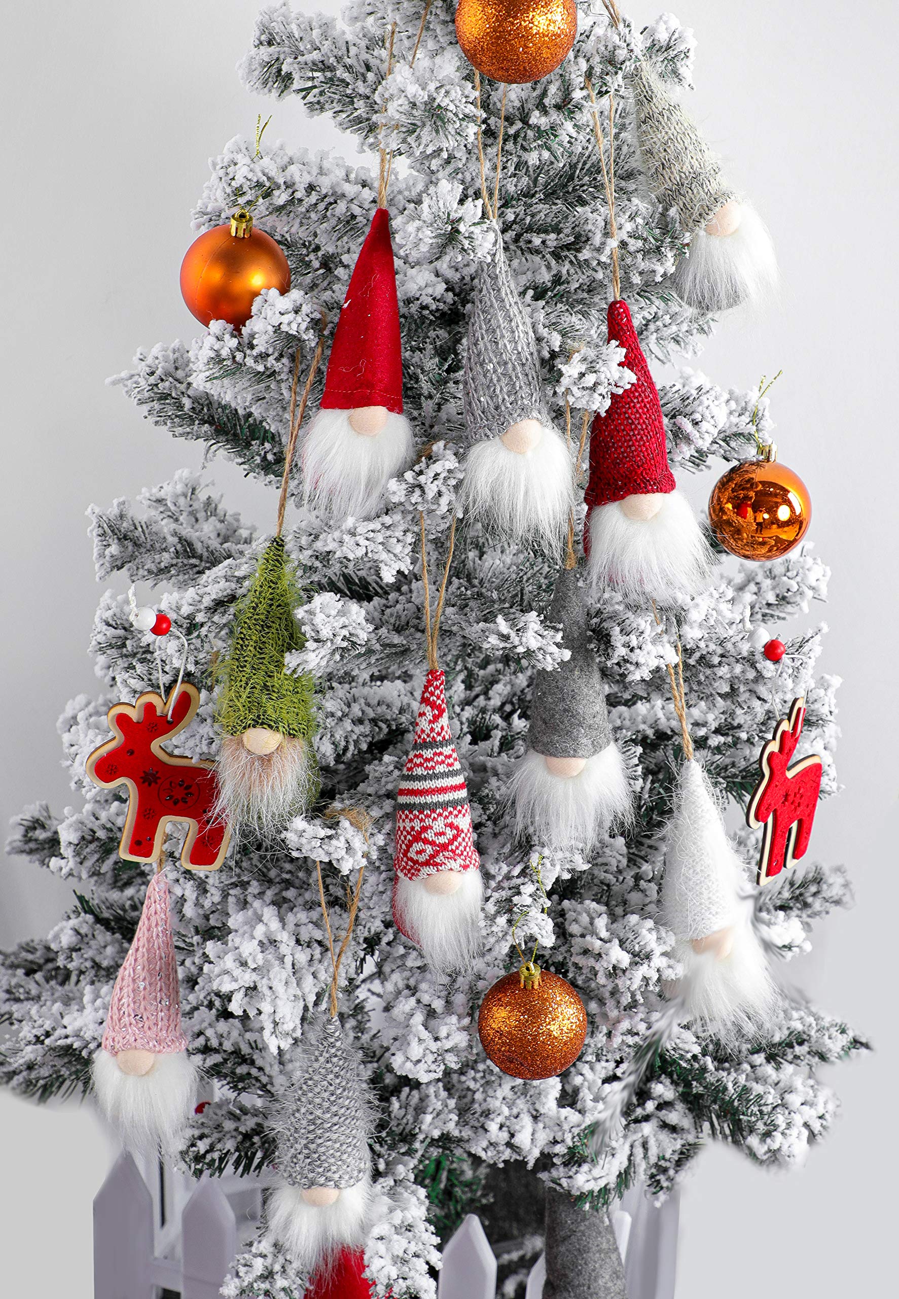 Christmas Tree Hanging Gnomes Ornaments Set of 10, Swedish Handmade Plush Gnomes Santa Elf Hanging Home Decorations Holiday Decor