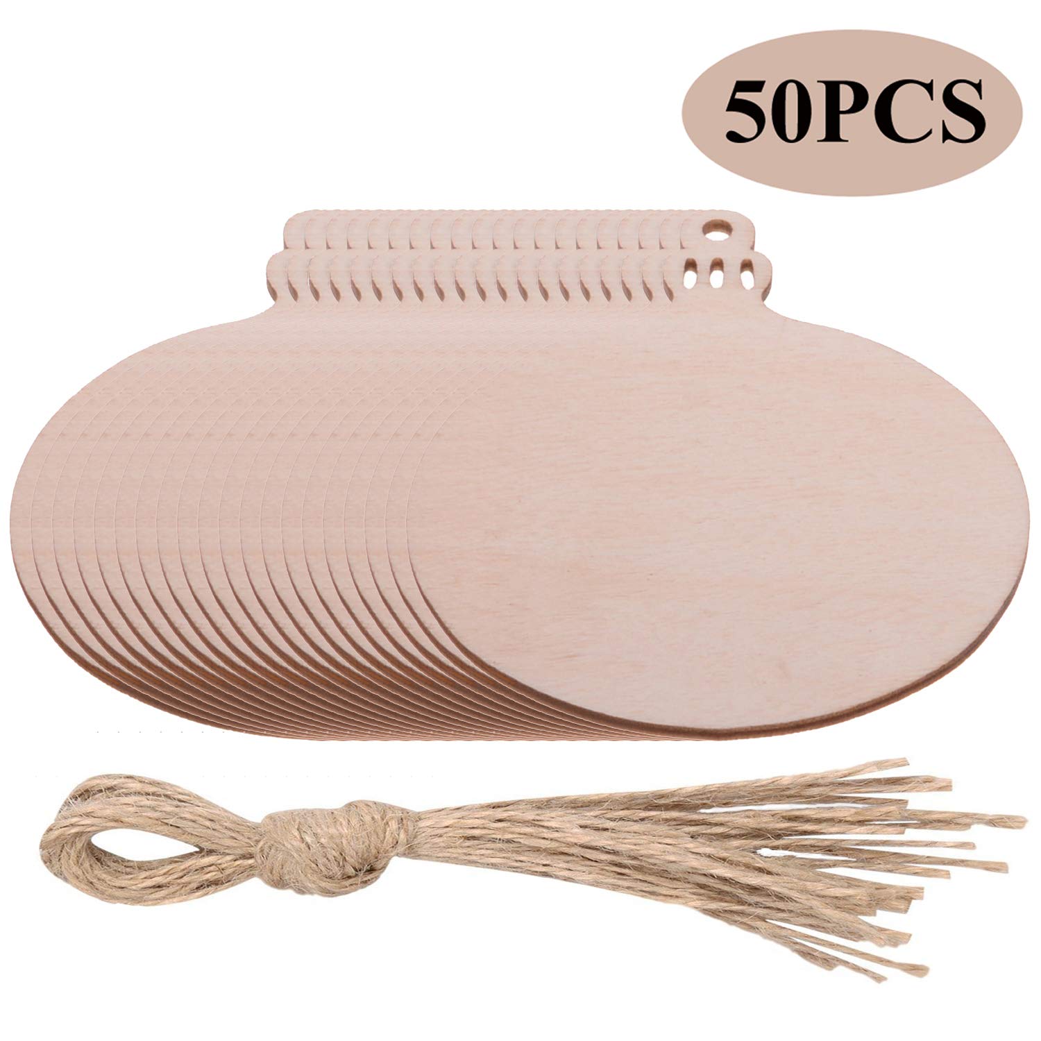 Details: Christmas Wooden Crafts Hanging Ornaments Christmas Tree Decoration Unfinished Wood Cutouts for DIY Blank Slices to Paint (50PCs Round Style)