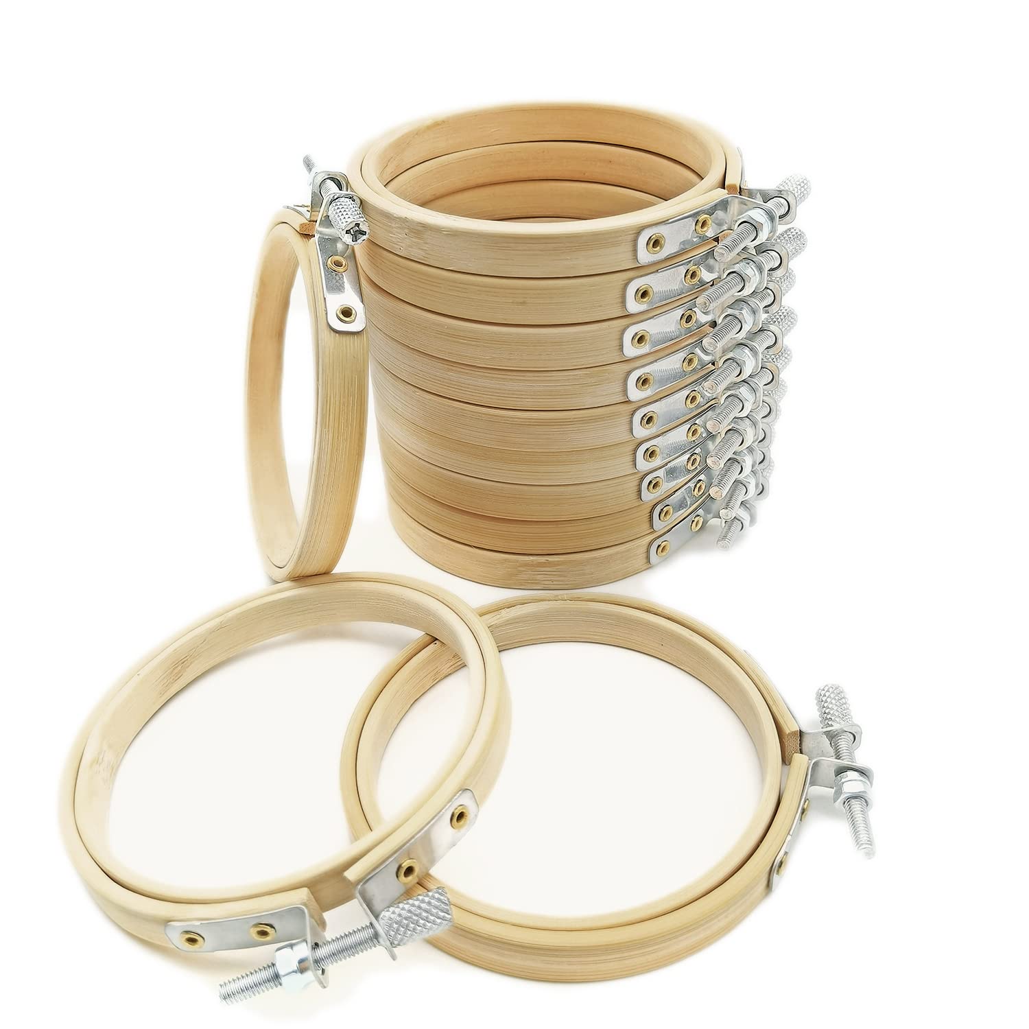 Cldamecy 12 Pieces 3 inch Embroidery Hoops,Round Bamboo Adjustable Circle Frame Cross Stitch Hoops for Christmas Ornament,Embroidery,Decoration,Art Craft and DIY Project
