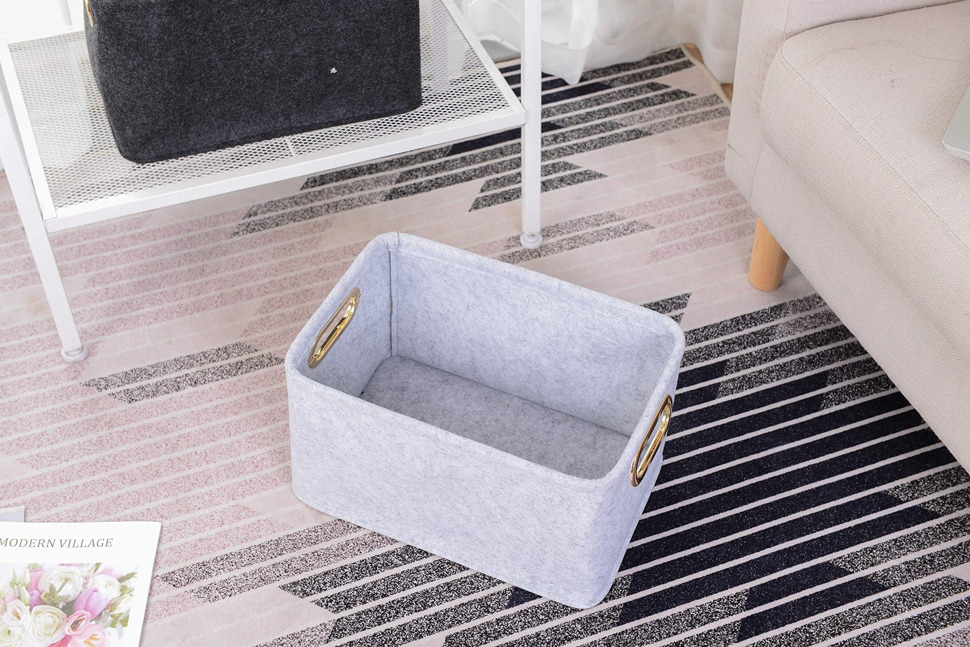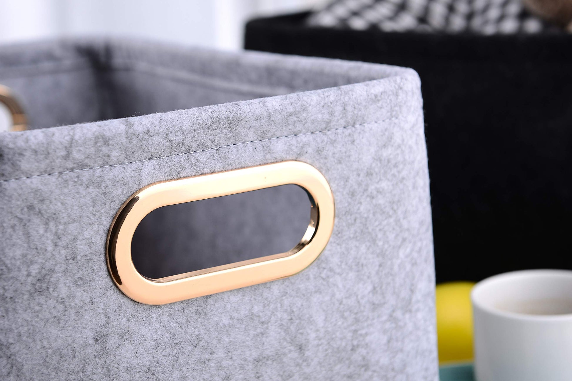 Collapsible Storage Bins Foldable Felt Fabric Storage Basket Organizer Boxes Containers with Handles Metal Handles for Nursery Toys,Kids Room,Clothes,Towels,Magazine