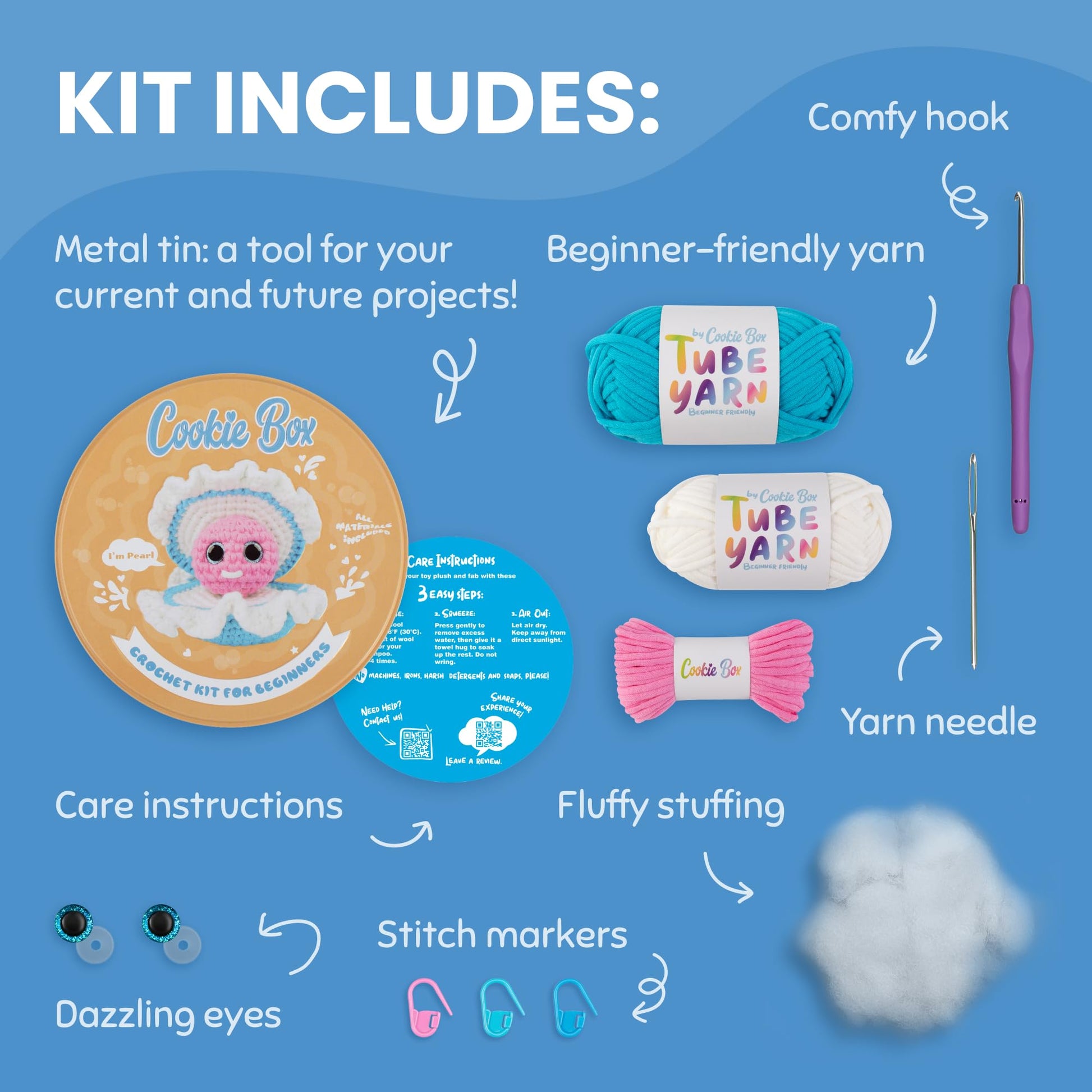 Cookie Box Crochet Kit for Beginners - Learn to Craft Amigurumi Stuffed Animals - Knitting Gift for Kids (13+) and Adults - Beginner-Friendly Yarn - Stitch-by-Stitch Video Tutorial - Oyster Pearl