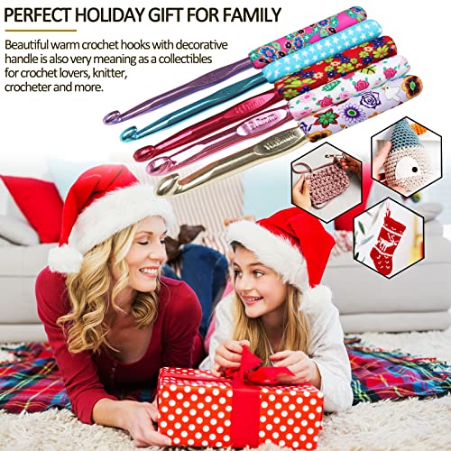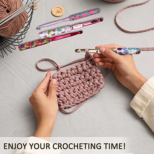 - ❤️[Pretty & Smooth Aluminum Hook, Easily Identify Size] The crochet grip pattern adopts beautiful flower series patterns. Our crochet hook set has a smooth hook, which doesn't catch on the yarn or split the yarn. Making the crocheting process more efficient and comfortable. Multicolor crochet hooks needles, different colors match different knitting needles size. Every hook is marked with numbers and letters, so you’ll never be confused