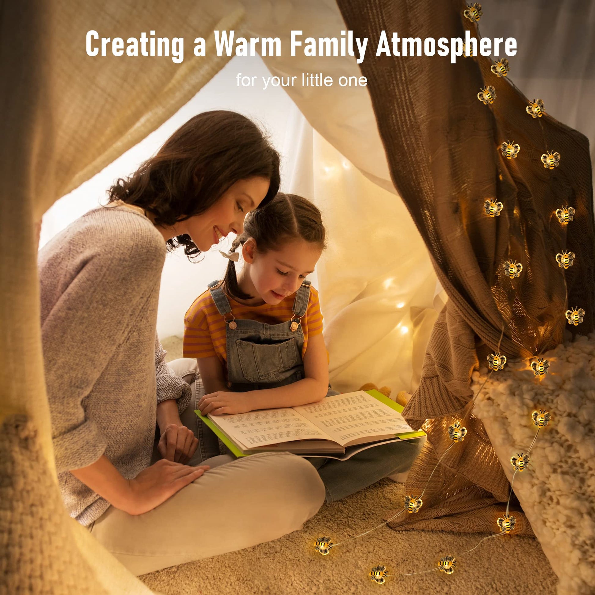 Coquimbo Bee Lights Room Decor, 10ft 30 LED Cute Bee String Fairy Lights Battery Operated, Honey Bee Gifts for Women Girls, Bee Decorations for Bedroom Plants Patio Party Wedding Party Xmas