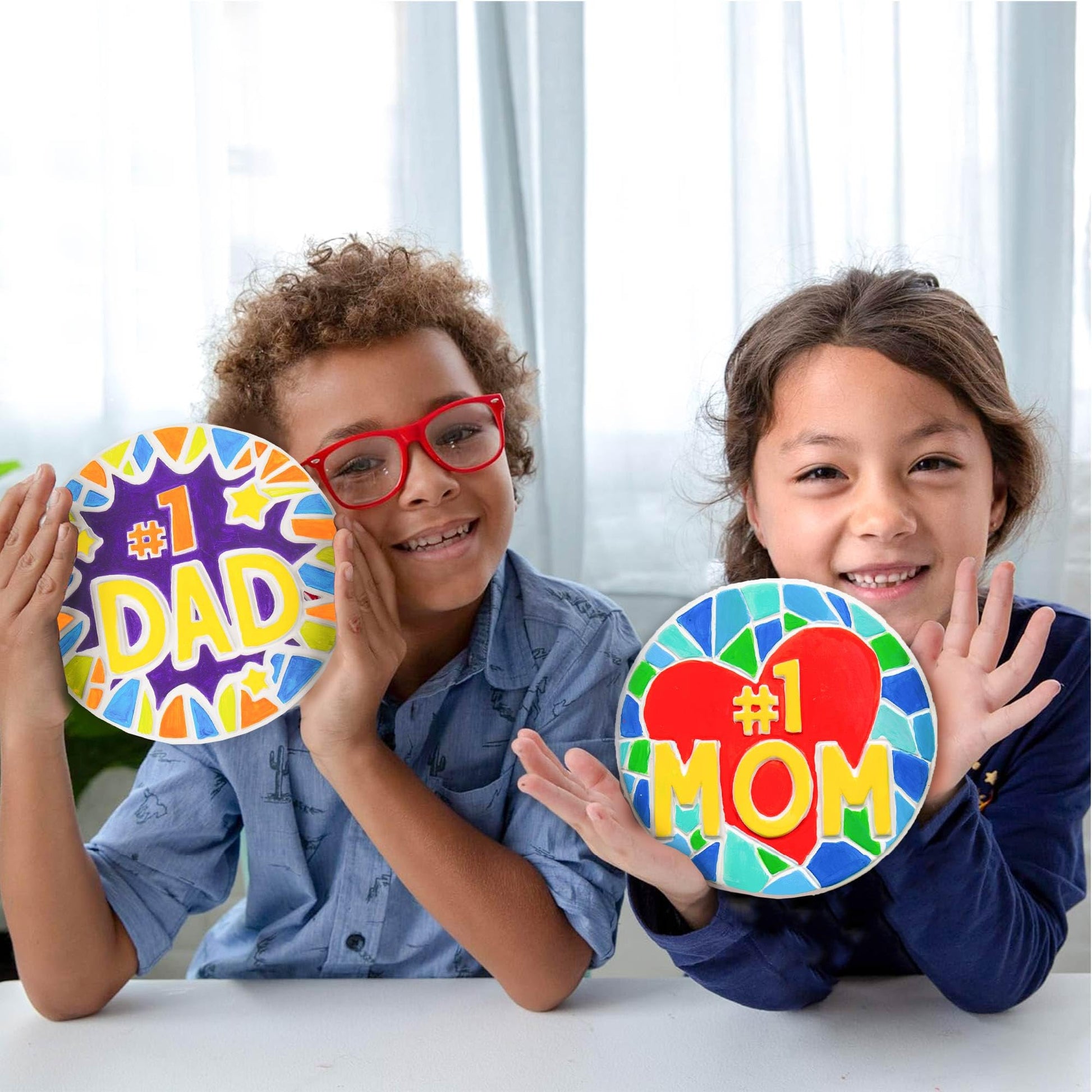 Creative Roots Paint Your Own #1 Dad Stepping Stone, Paintable Ceramic 7 in. Stone, Includes 6 Acrylic Paints & Paintbrush, Great Arts and Crafts for Kids Ages 8-12, Father's Day Gift