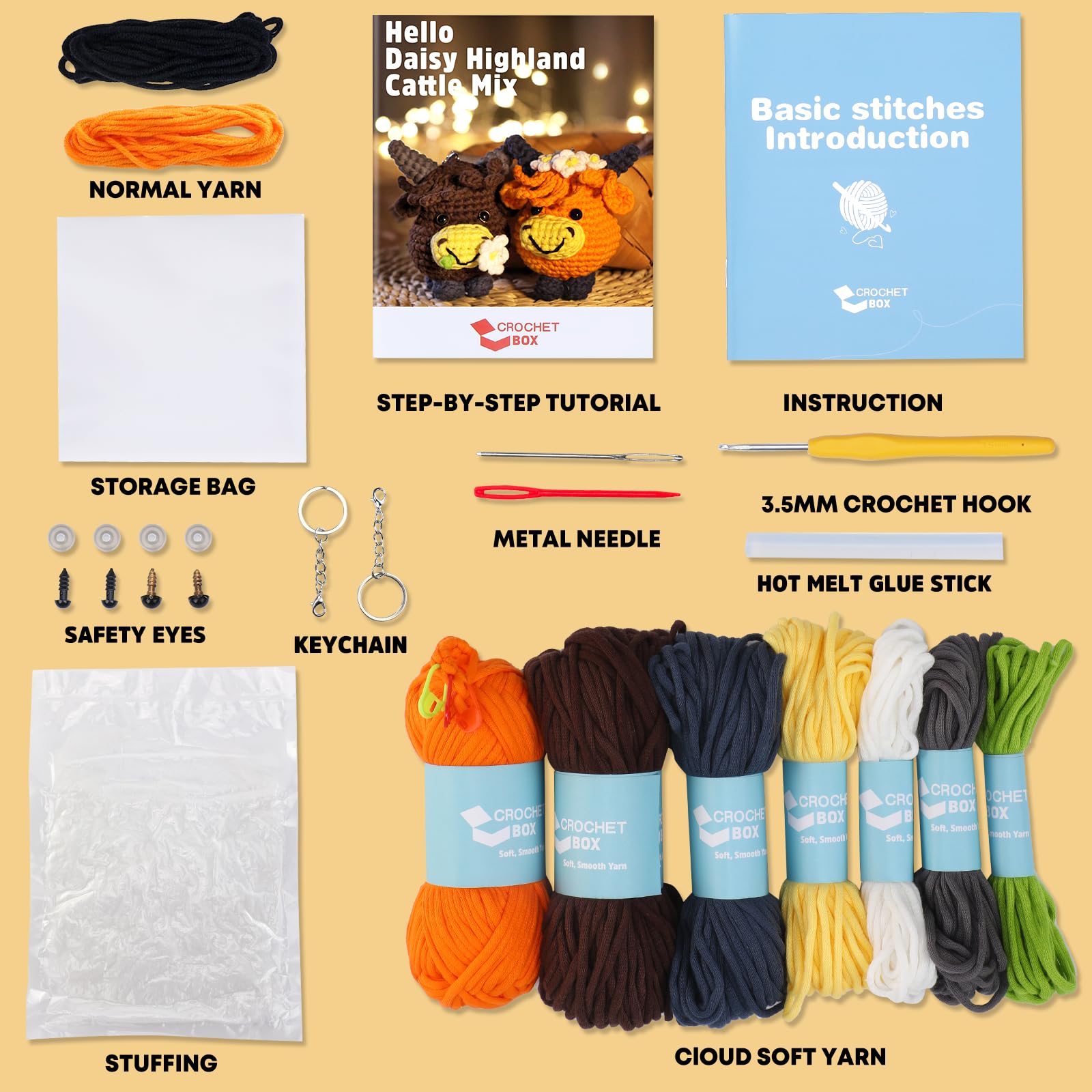 - [Complete Kit for Your Creativity]: CROCHET BOX's amigurumi crochet kit includes all the essential elements for crafting adorable amigurumi, such as a hook, yarn, stuffing, safety eyes, video tutorials, and comprehensive instructions. By conveniently packaging all the necessary tools together, we streamline your experience, eliminating the need to hunt for individual components.