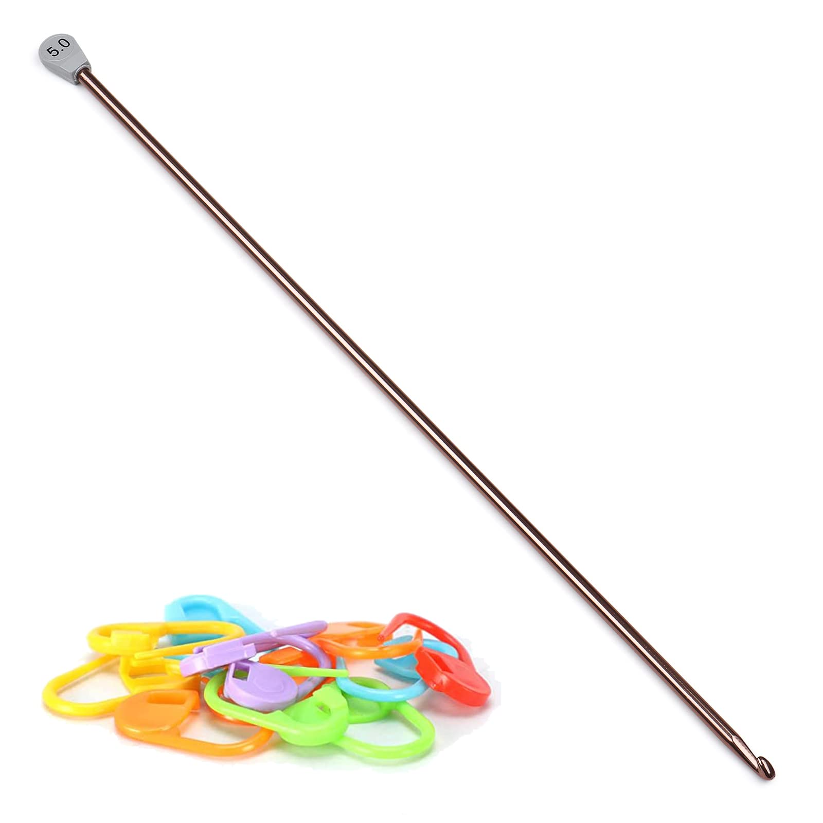 - Why We Sell the Single Tunisian Crochet Hook: Are you still struggling with the lack of a certain size in a crochet hook set? This crochet needle is perfect for you. With sizes marked on the stopper at the end, you can easily distinguish the size of the hooks, the stopper at the end was very helpful and prevented the yarn from falling off and was stuck really well to the aluminum hook.