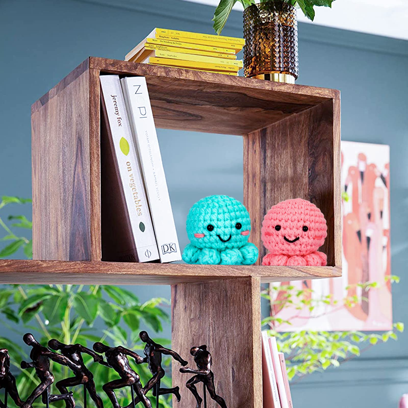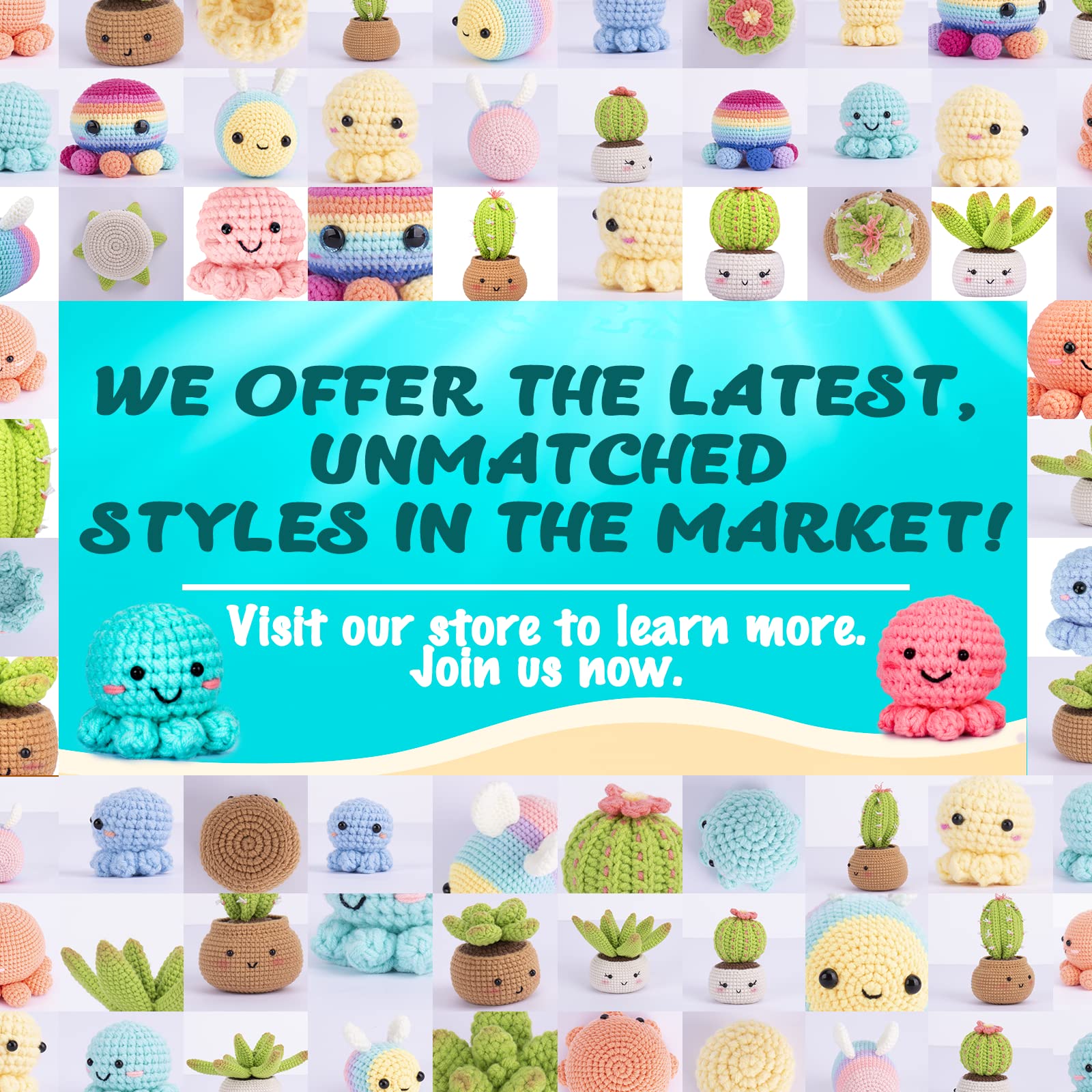 - All-In-One Crochet Kit equipped with yarn, stuffing, needle, eyes, buckles, crochet hooks, scissors, octopus pattern, beginner's manual