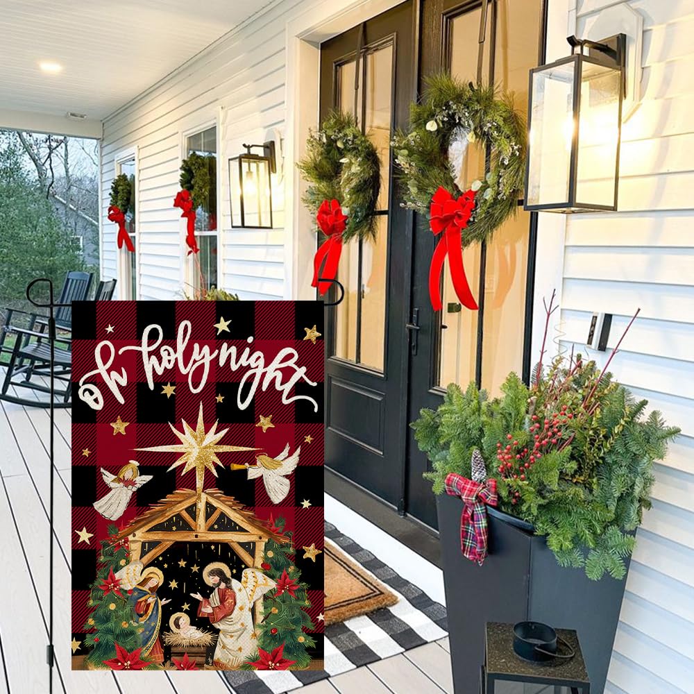 - Festive Holiday Design: Our Christmas garden flag features a classic Winter Christmas scene with jesus nativity, holy night, and a cheerful holiday message—perfect for adding a joyful touch to any outdoor space
