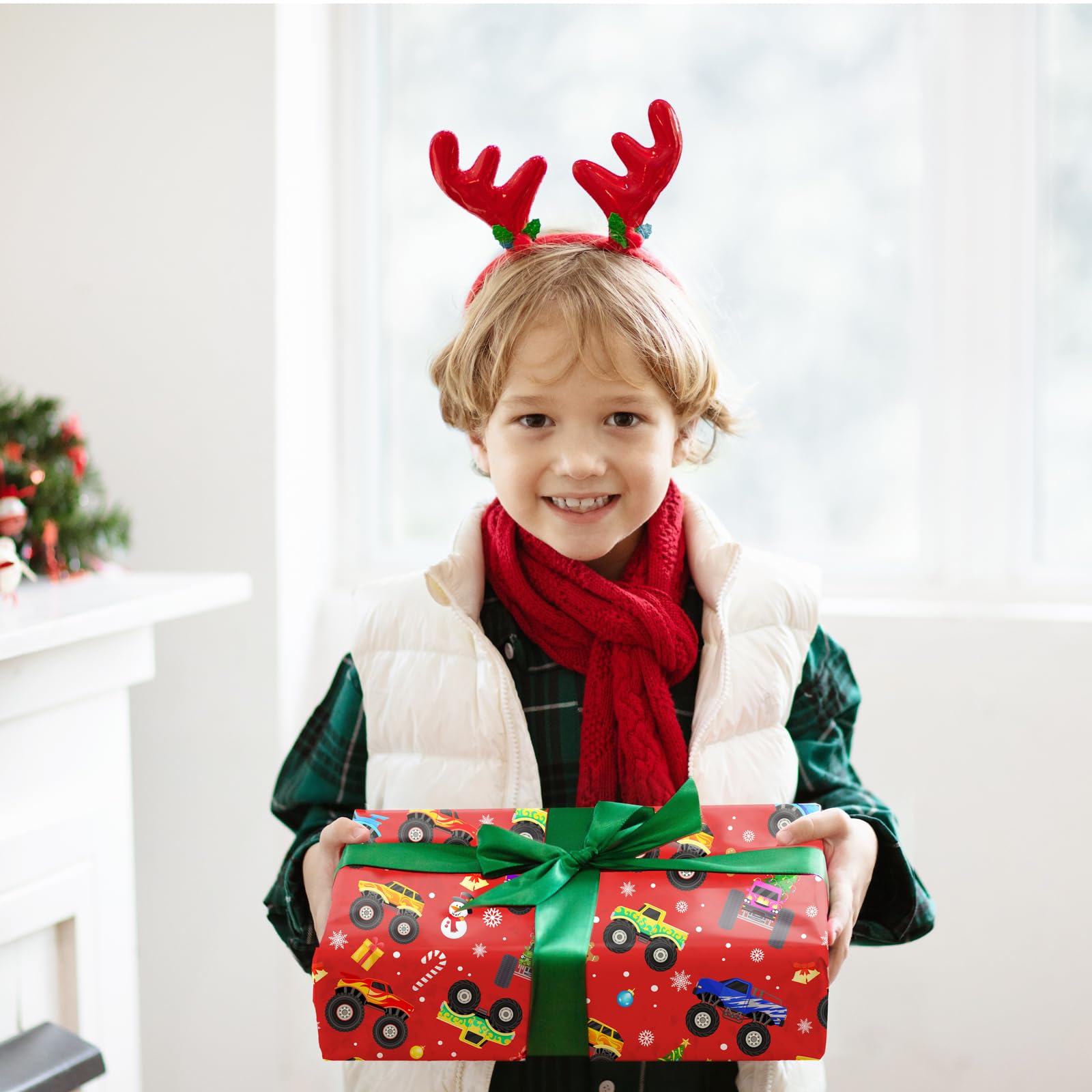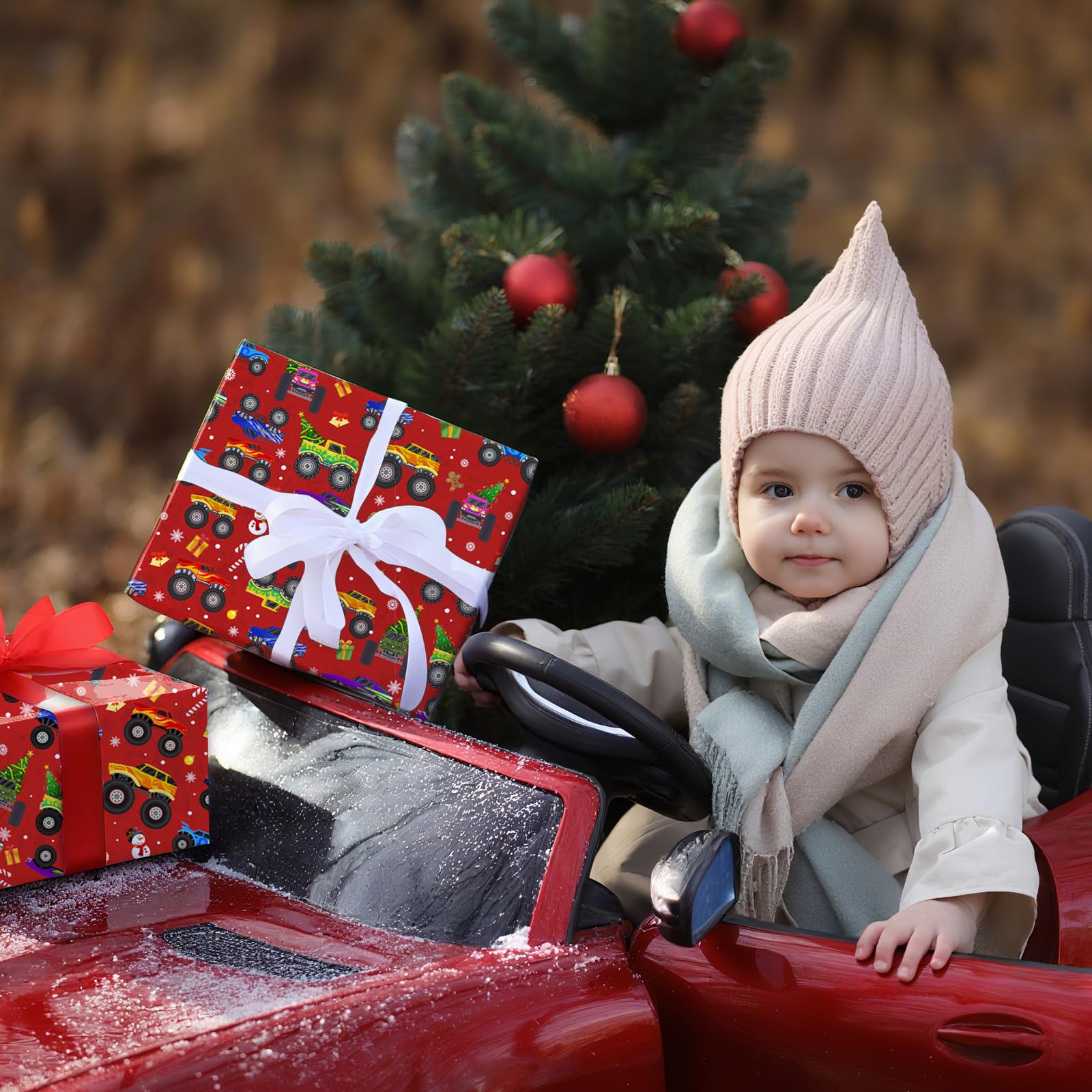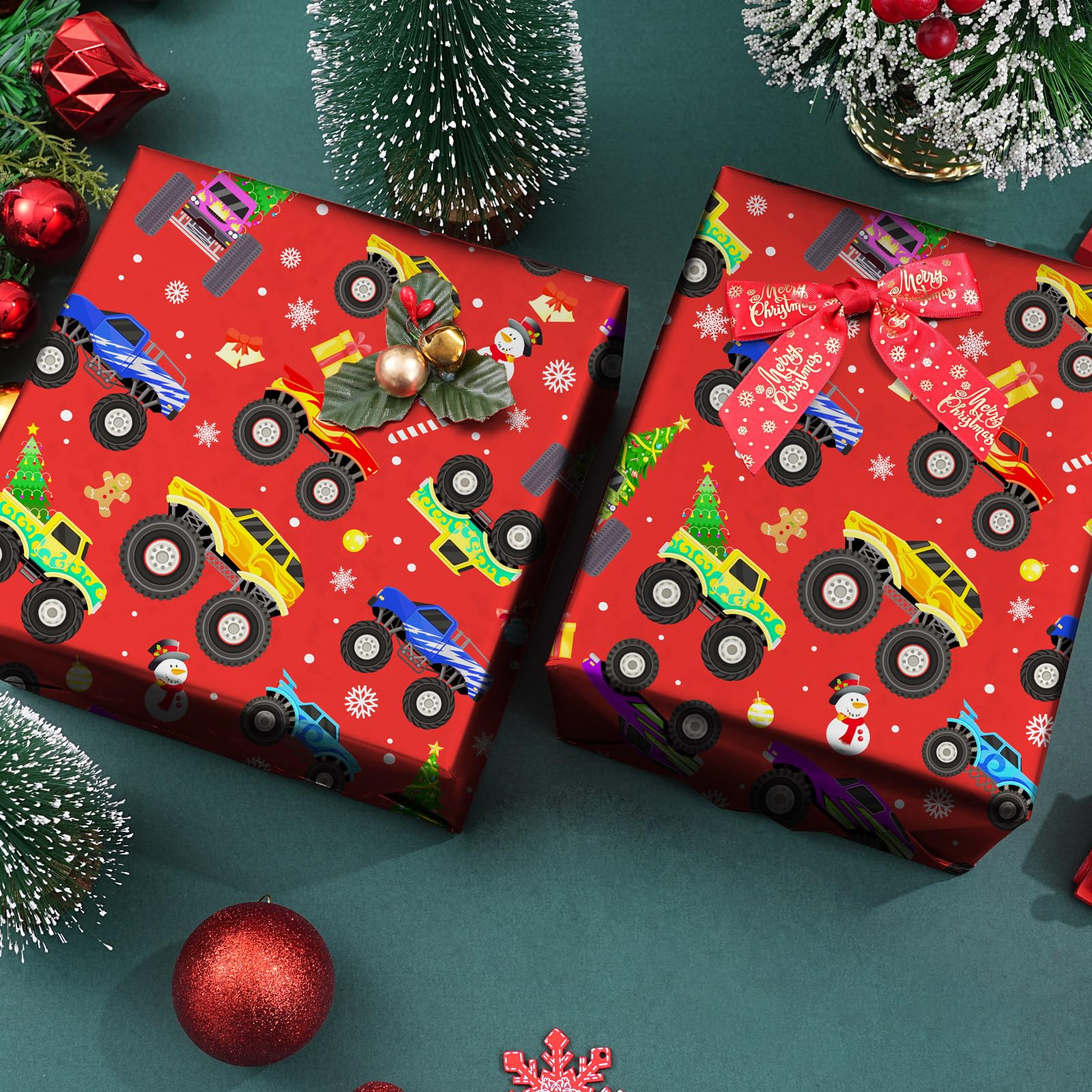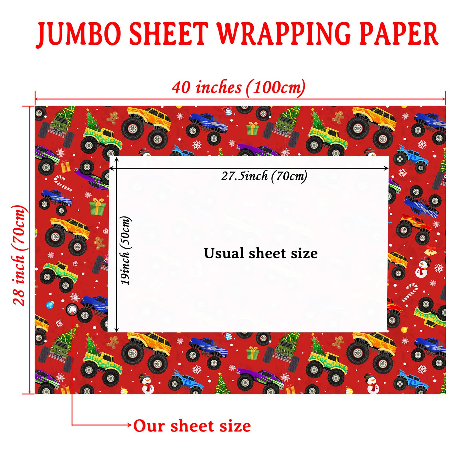 - Durable Monster Truck - Themed Festive Wrapping Paper:This set of Christmas wrapping paper is made of high-quality paper with a smooth surface. Glossy coating, clear printing, thick and sturdy design to prevent tearing.
