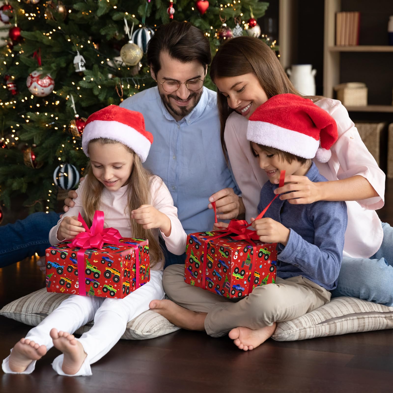 Cuitpan Red Monster Truck Christmas Wrapping Paper - Xmas Gift Wrap with Holiday Trees, Snowmen & Gingerbread Men Design - Ideal for Kids & Adults Gift Wrapping - 40×28 Inches, 4 Folded Sheets