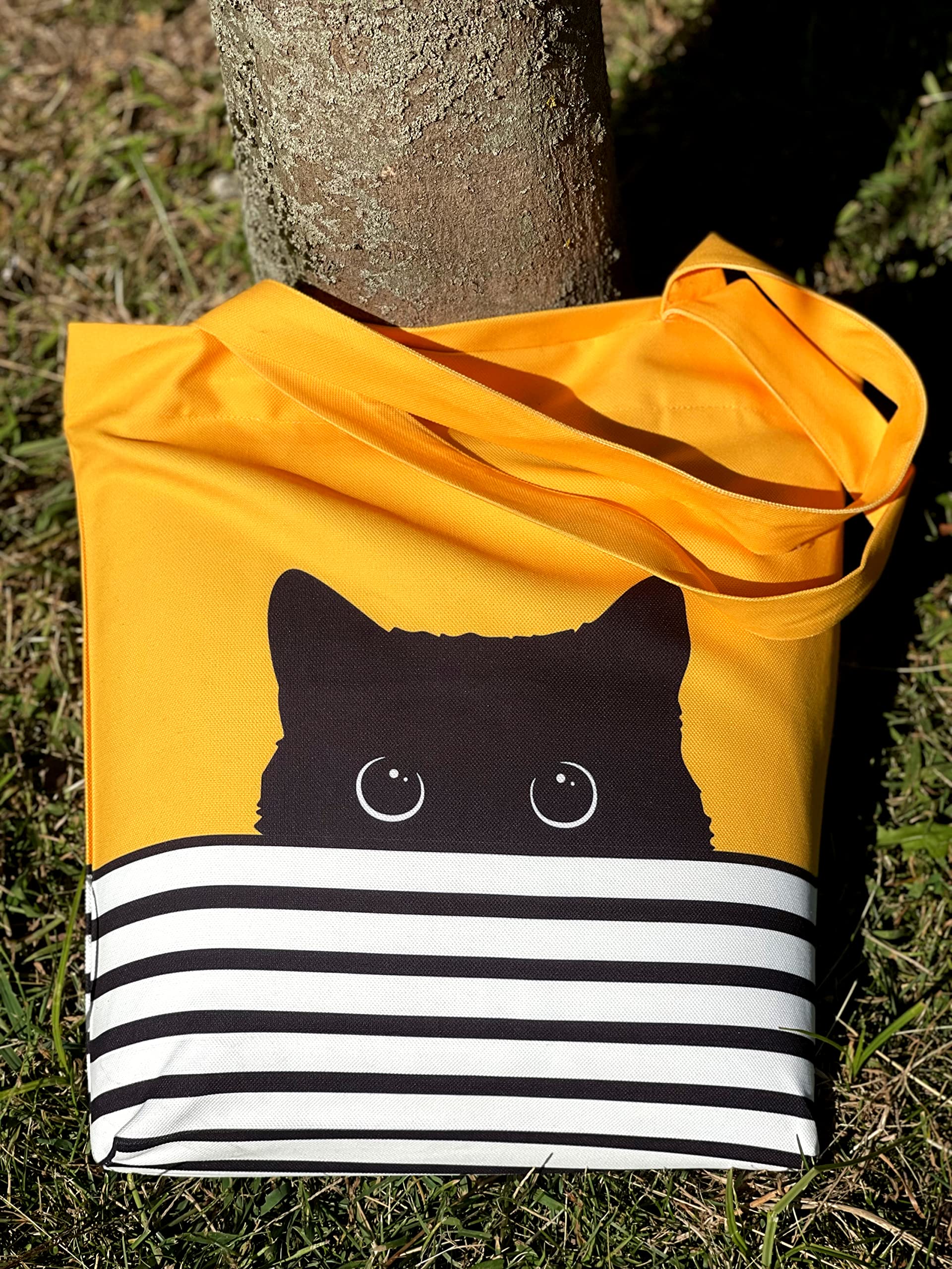 - CAT TOTE BAG - Stand out from the crowd with our eye-catching canvas tote bag featuring a cute and playful black cat design that's sure to turn heads wherever you go. You can use it as a book tote bag, beach tote bag, reusable grocery bag, shopping bag or gift bag
