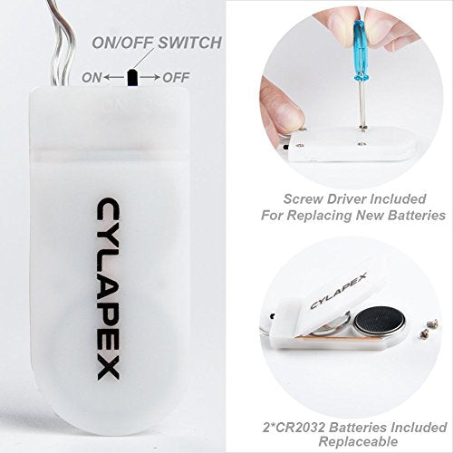 - What you get: Pack of 12 units of CYLAPEX LED starry string lights, CYLAPEX Gift Card, Screw Driver. LED lights can last 50,000hours under regular using, it's waterproof string lights(except the battery pack)