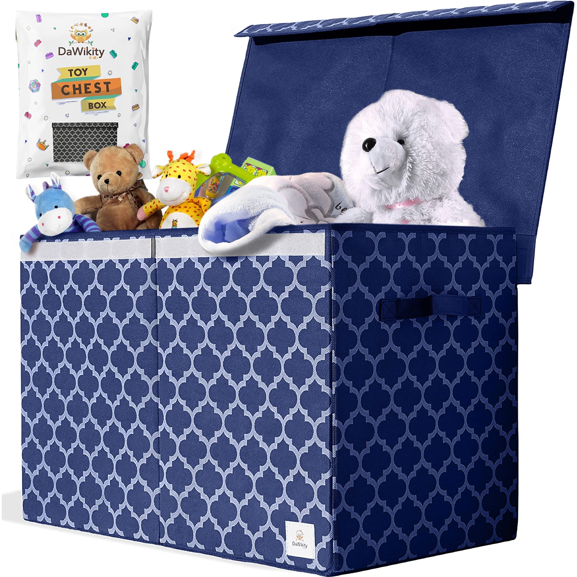 DaWikity Kids Toy Chest - Collapsible Storage Bin for Nursery, Bedroom, and Playroom - Toy Box with Lid, Hook-and-Loop Fastener - Spacious Compartment for Toddler Boys and Girls - 25"x16"x13", Navy