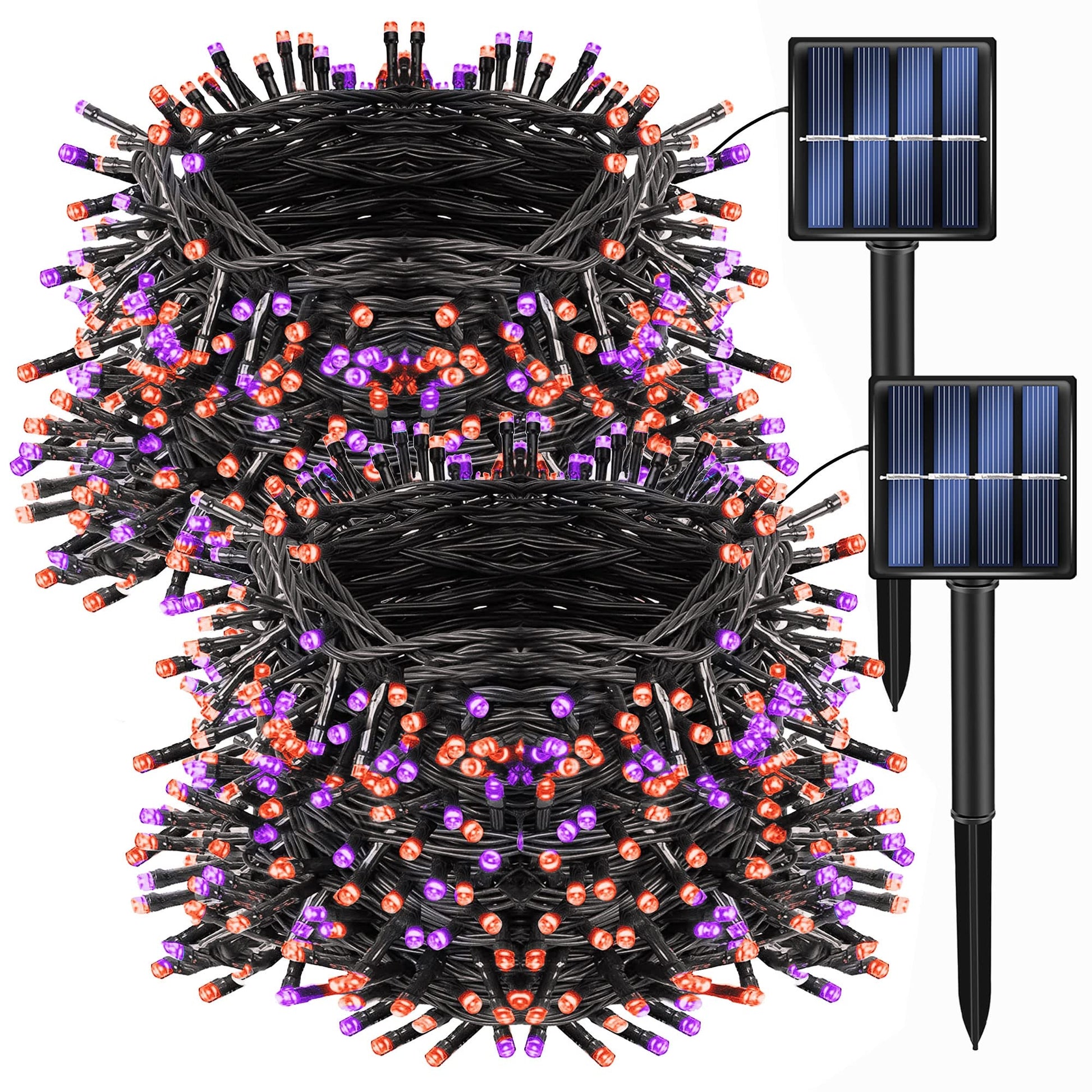 Dazzle Bright 2 Pack Total 400LED 132FT Halloween Solar String Outdoor Lights, 8 Modes Waterproof Halloween Lights for Bedroom Patio Garden Tree Party Yard Decoration (Purple & Orange)