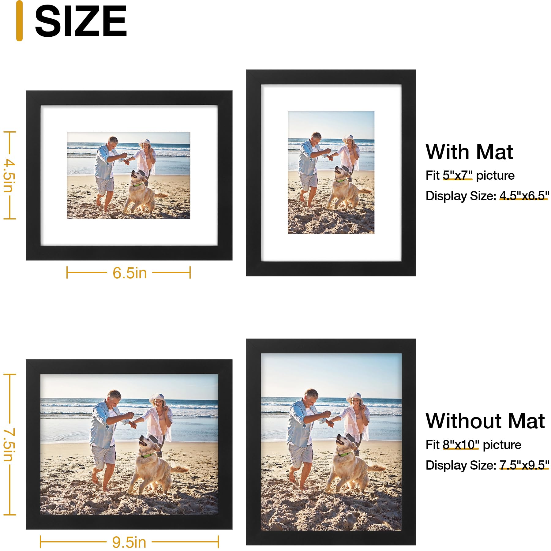 - Elegant Design: Attractive black 8x10 picture frame holds photo 5x7 matted or 8x10 without mat, vertical or horizontal