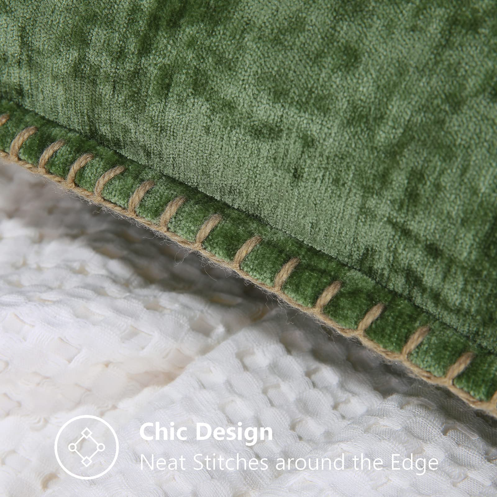 decorUhome Chenille Soft Throw Pillow Covers 18x18 Set of 2, Spring Farmhouse Velvet Pillow Covers, Decorative Square Pillow Covers with Stitched Edge for Couch Sofa Bed, Forest Elf
