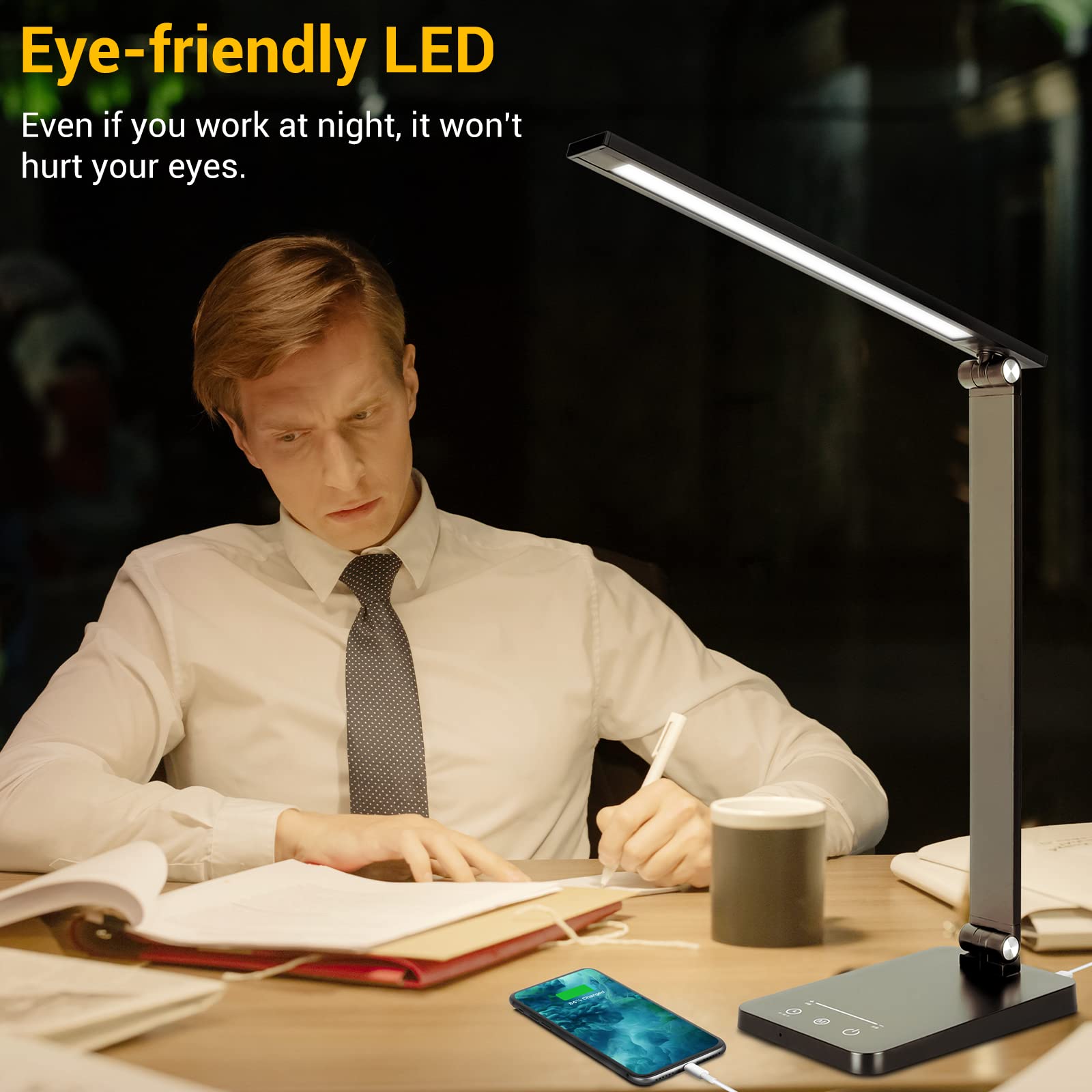 Desk Lamp, LED Desk Lamp, Desk Lamp for Home Office, 5 Color Modes Dimmable Desk Light, Desk Lamp with USB Charging Port, Office Lamp, Small Desk Lamps, Study Lamp, Reading Light, Table Lamp, Black