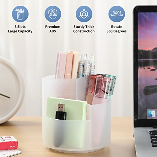 Desk Pencil Pen Holder, 3 Slots 360-Degree Spinning Pencil Pen Desk Organizers, Desktop Storage Pen Organizers Stationery Supplies, Cute Pencil Cup Pot for Office, School, Art Supply, Kids - Clear
