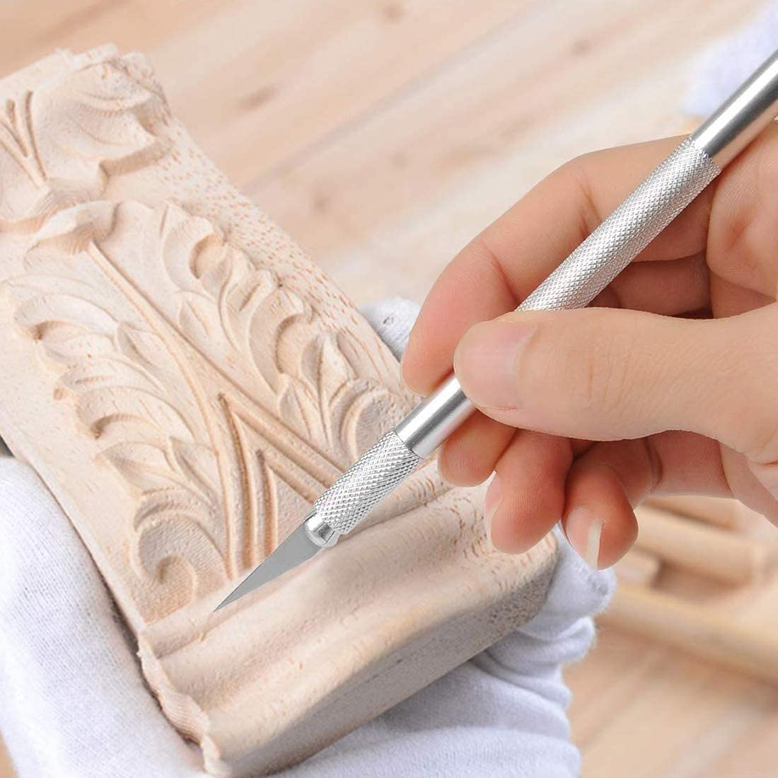 - [Lightweight and Portable]--- Non-slip Design for Easy Grip.Light-weight metal handle arts knife with texture effectively reduce hand fatigue level and offers more steadily grip when you using it.