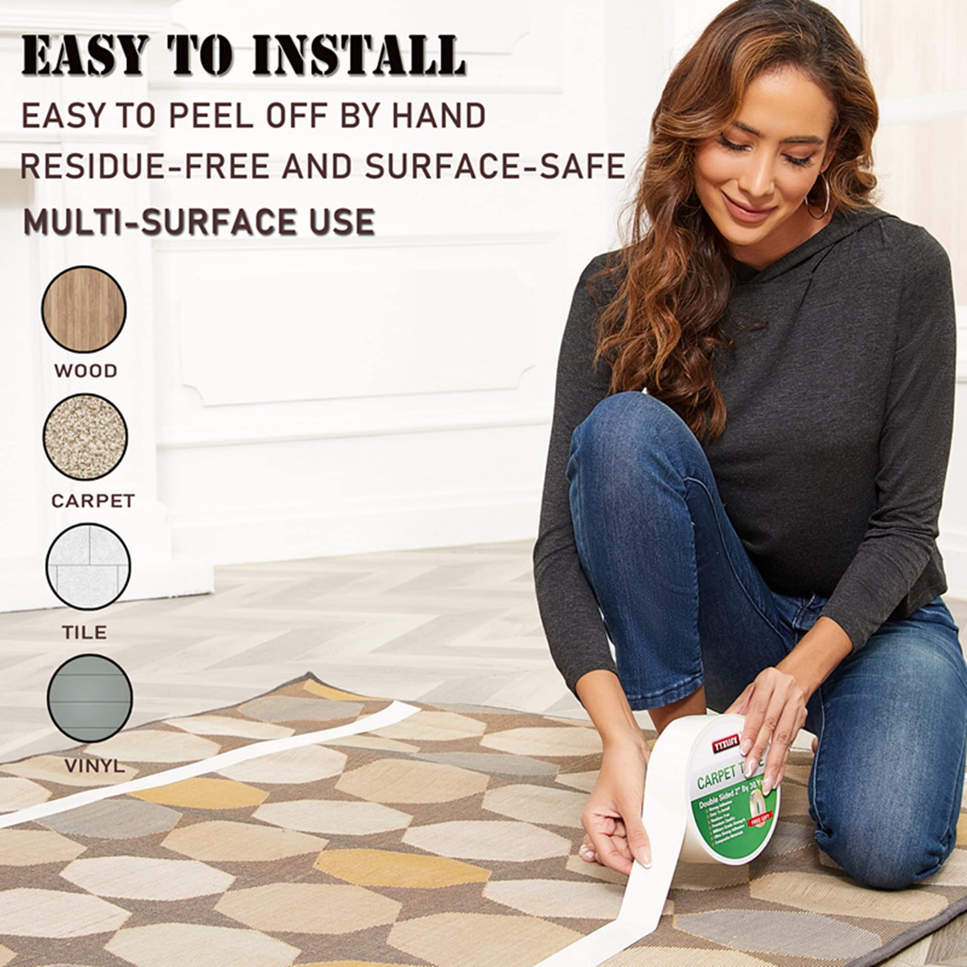 - PROTECT YOUR FAMILY. YYXLIFE carpet tape not only has reinforced glass fiber and higher durability, but also provides the utmost safety to kids and elderly by preventing your carpets from slipping suddenly.